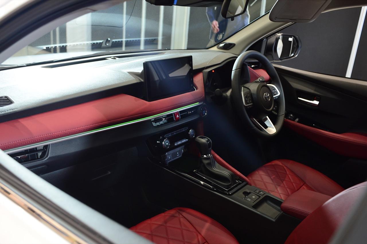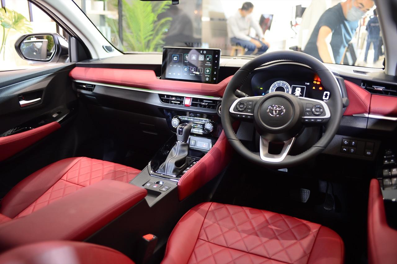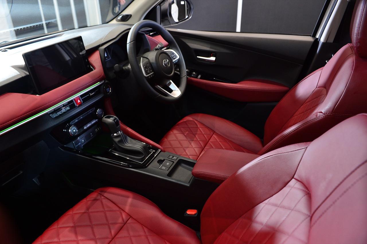 ภายในตกแต่งด้วยสีแดง ทั้งบริเวณคอนโซลหน้าและเบาะหนังแท้