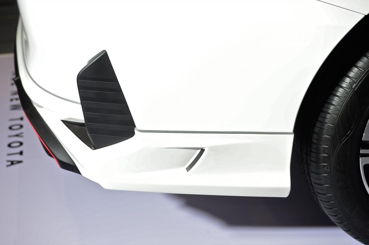 ชุดแต่งกันชนหลังแบบครีบรีดอากาศดิฟฟิวเซอร์ พลาสติกสีดำคาดเส้นสีแดง พร้อมสัญลักษณ์ Presto