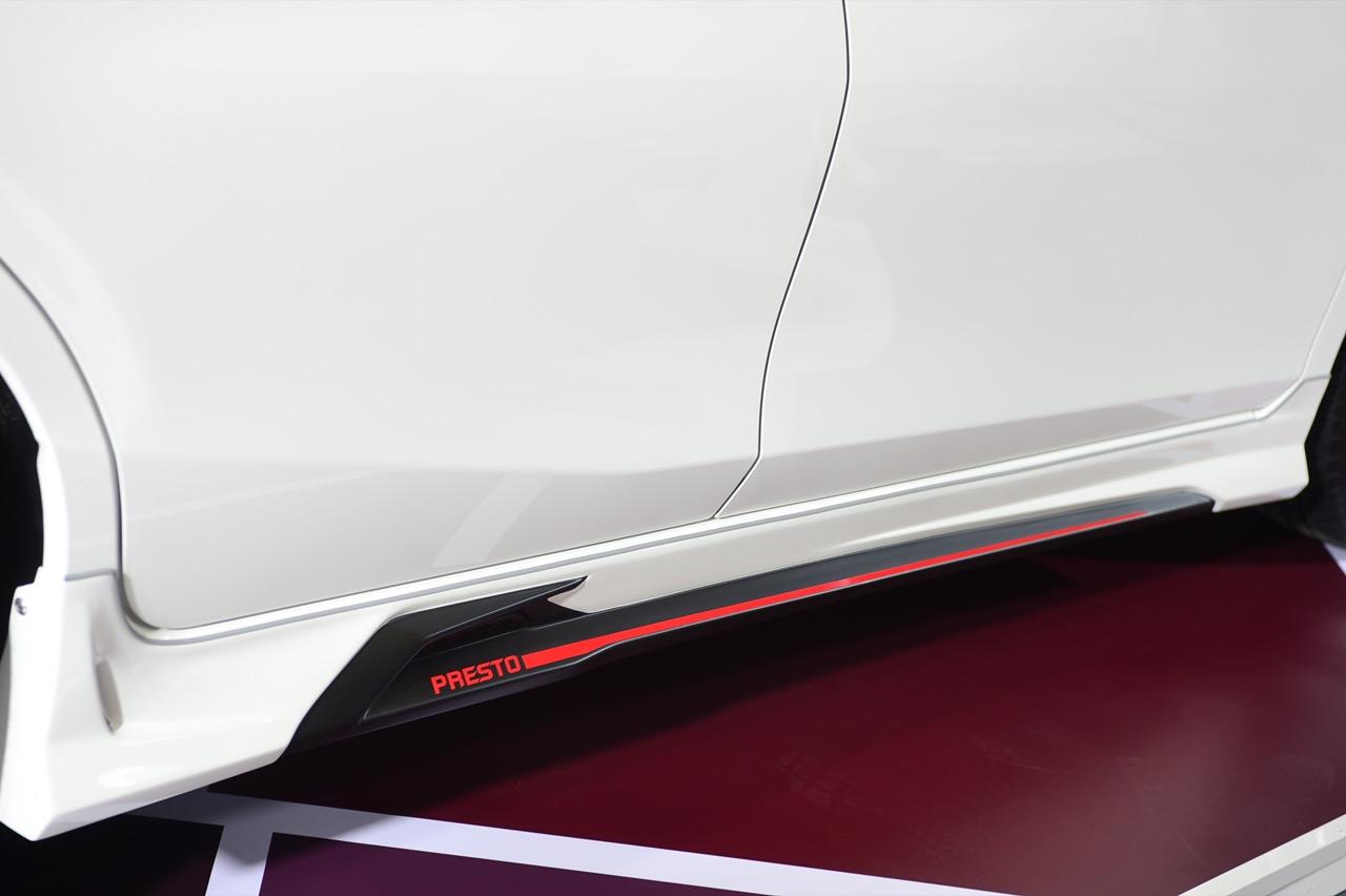 สเกิร์ตข้างสีเดียวกับตัวถัง เดินเส้นด้วยสีดำคาดสีแดง สอดรับกับชิ้นงานตกแต่งชายล่างกันชนหน้า-หลัง