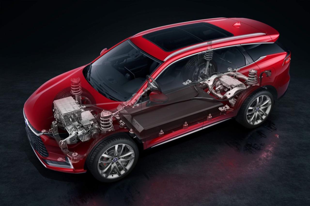 BYD TANG EV ยานยนต์พลังงานไฟฟ้า ในรูปแบบของรถยนต์ครอสโอเวอร์อเนกประสงค์ขนาดกลาง มีขนาดตัวรถใกล้เคียงกับ Ford Everest มิติตัวถัง มีขนาดความยาว 4,870 มิลลิเมตร กว้าง 1,950 มิลลิเมตร และสูง 1,725 มิลลิเมตร ระยะฐานล้อ 2,820 มิลลิเมตร มอเตอร์ไฟฟ้า กำลังสูงสุด 509 แรงม้า ชาร์จไฟเต็มทำระยะทาง 635 กิโลเมตร อัตราเร่ง 0-100 กิโลเมตรต่อชั่วโมง ใน 4.4 วินาทีชุดแบตเตอรี่ Blade 108.8 kWh ที่ใหญ่ขึ้น ซึ่งประกอบด้วยเซลล์ LFP รถยนต์ไฟฟ้า Tang EV มาในรุ่นขับเคลื่อนล้อหน้า 2WD แบบมอเตอร์เดี่ยว และขับเคลื่อนสี่ล้อ 4WD แบบมอเตอร์คู่ รุ่นขับหน้ามีระยะทำการไกล 730 กิโลเมตร ส่วนรุ่นขับสี่ มีระยะทำการไกล 635 กิโลเมตร ตามลำดับ ตัวเลขระยะทางต่อการชาร์จไฟจนเต็มแบตฯ เหล่านี้ เป็นการปรับปรุงที่สำคัญจากตัวเลขระยะทาง 565 กม./351 ไมล์ (2WD) และ 505 กม./314 ไมล์ (4WD) ของรุ่นก่อนปรับโฉม