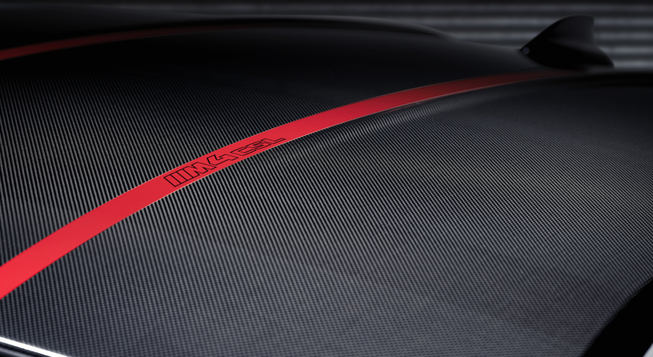 แผงหลังคาของ BMW M4 CSL เทำจาก CFRP เหมือนกับ M4 Competitio การใช้วัสดุไฮเทคน้ำหนักเบาแต่แข็งแกร่งอย่างมหาศาลที่จุดสูงสุดของบอดี้ช่วยลดน้ำหนักโดยรวมของรถในขณะที่ลดจุดศูนย์ถ่วงให้ต่ำลงอีก ช่วยเพิ่มความคล่องตัวและไดนามิกในการเข้าโค้งให้ก้าวไปอีกขั้น BMW M4 CSL ยังใช้คาร์บอนไฟเบอร์สำหรับฝากระโปรงหน้าและฝากระโปรงหลังเหมือนกับรถแข่ง M4 GT3 ฝากระโปรงหน้า CFRP มีน้ำหนักเบากว่าฝากระโปรงอะลูมิเนียมของ BMW M4 Competition ประมาณ 1.3 กิโลกรัม โครงสร้างคาร์บอนไฟเบอร์ถูกเปิดเผยอย่างชัดเจน โดยช่องสลักสองช่องที่ยื่นออกตามองค์ประกอบกระจังหน้าไตคู่ ไปจนถึงขอบฝากระโปรงหน้า เมื่อเข้าใกล้กระจกหน้ารถ ขอบของช่องที่ไม่ได้ทำสีนั้นมีขอบสีแดงที่ช่วยเน้นภาพลักษณ์พิเศษให้กับหลังคา CFRP แบบ “ดับเบิ้ลบับเบิล” และรูปทรงของกาบข้างที่ขยายออก การเน้นสีแดงและคาร์บอนไฟเบอร์แสดงความแตกต่างด้วยตัวเลือกสีภายนอกที่เคลือบด้วยสีเทา Frozen Brooklyn Grey เพื่อสร้างรูปลักษณ์ที่มีผลกระทบทางสายตา ลูกค้ายังสามารถเลือกสีของ BMW M4 CS โดยมีสีขาว Alpine White หรือสีดำ Black Sapphire metallic ตราสัญลักษณ์ BMW M 50 Years สำหรับฝากระโปรงหน้า ฝากระโปรงหลัง และฝาครอบกลางล้อ เป็นการฉลองครบรอบ 50 ปีของ BMW M GmbH ตราดังกล่าว ทำให้นึกถึงโลโก้สีน้ำเงิน/ม่วง/แดง ในรถแข่ง BMW Motorsport GmbH รุ่นปี 1973