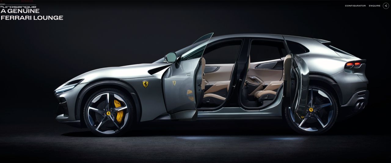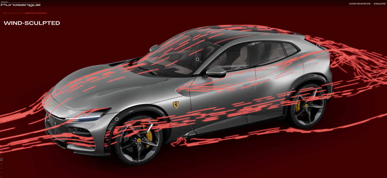 หลังจากประสบความสำเร็จในกีฬามอเตอร์สปอร์ตที่มีมูลค่าสูงลิบ Ferrari ยอมลดแรงกดดันของลูกค้าที่ต้องการรถเอสยูวีหรู ด้วยการผลิตรถรุ่น Purosangue รถเอสยูวีที่มีตราม้าบนกระจังหน้าเป็นครั้งแรก ผู้บริหารของม้าลำพองมั่นใจว่า การมาถึงของ Purosangue จะไม่ทำลายภาพลักษณ์ของแบรนด์ที่ผลิตแต่รถซุปเปอร์คาร์ และเป็นที่รู้กันดีว่า Porsche กับ Lamborghini ผลิตรถเอสยูวีที่มีสมรรถนะเหนือชั้นอย่าง Cayenne Turbo และ Urus รวมถึงรถอเนกประสงค์สุดหรูอย่าง Bentley Bentayga และ Rolls-Royce Cullinan นั่นคือความต้องการของมหาเศรษฐีที่ Ferrari จะต้องตอบสนอง ด้วยซุปเปอร์เอสยูวี เครื่องยนต์ V-12 เสริมการควบคุมและจัดการองคาพยพทั้งหมด ระบบกันสะเทือนแบบแอคทีฟ แชสซีส์ที่ออกแบบเป็นพิเศษ พร้อมระบบเลี้ยวสี่ล้อ เทคโนโลยี Ferrari Active Suspension Technology ล่าสุด รับไฟฟ้ามาจากระบบ Mild Hybrid 48 โวลต์ ระบบ Active Suspension ช่วยทำให้การโค้งตัวไหลลื่นมากกว่าเดิม จุดศูนย์ถ่วงถูกปรับให้ต่ำที่สุด แต่เมื่อเทียบกับ Ferrari รุ่นอื่น Purosangue กลับมีตัวเลขของค่า GC เยอะกว่ามาก