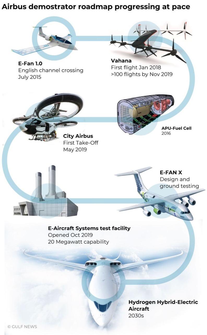 Airbus บริษัทผลิตอากาศยานของยุโรป เปิดตัวโครงการวิจัยและพัฒนาเครื่องบินโดยสาร ที่ใช้พลังงานไฮโดรเจน ซึ่งเป็นส่วนหนึ่งของภารกิจปลอดมลพิษ ด้วยแนวคิดที่จะมีเครื่องบินโดยสารที่ไม่ปล่อยคาร์บอนไดออกไซด์ในอากาศ ขึ้นบินรับส่งผู้โดยสารทั่วโลก ภายในปี คศ. 2035 (พศ. 2578) Airbus กำลังศึกษาถึงความเป็นไปได้ของการพัฒนาเครื่องยนต์พลังงานไฮโดรเจนให้กับเครื่องบินโดยสารยุคใหม่ในอนาคต โดยใช้การออกแบบที่แตกต่างกันถึงสามแบบ เนื่องจาก Airbus ต้องเผชิญกับแรงกดดันด้านการลดมลภาวะจากรัฐบาลฝรั่งเศสและเยอรมัน ซึ่งเป็นผู้ถือหุ้นรายใหญ่ที่สุดของบริษัท ในอีกห้าปีข้างหน้า Airbus จะทดสอบเครื่องบินโดยสารทั้งสามแบบ และจะทำการประเมินว่า เครื่องบินแบบใดที่สามารถนำมาผลิตจริงได้ดีที่สุด