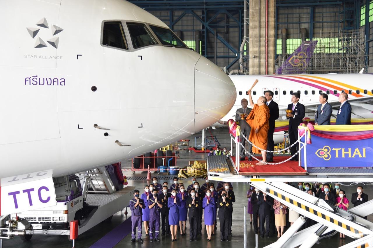 เมื่อวันอังคารที่ 18 ตุลาคม และวันพุธที่ 19 ตุลาคม 2565 ที่ผ่านมา สมเด็จพระมหารัชมงคลมุนี ผู้ช่วยเจ้าอาวาสวัดไตรมิตรวิทยาราม ประกอบพิธีเจิมเครื่องบิน Boeing 777-300ER นามพระราชทาน “อลงกรณ์” (ALONGKORN) และ “ศรีมงคล” (SIMONGKHON) โดยมี นายศิริ จิระพงษ์พันธ์ และนายชาญศิลป์ ตรีนุชกร ผู้บริหารแผนฟื้นฟูกิจการ ฝ่ายบริหารของบริษัทฯ และแขกผู้มีเกียรติร่วมในพิธี ณ โรงซ่อมอากาศยาน (Hangar) สายช่าง การบินไทย สุวรรณภูมิ และมีกำหนดจัดพิธี เจิมเครื่องบิน Boeing 777-300ER อีก 1 ลำ “เทพราช” (THEPARAT) ในวันที่ 26 ตุลาคม ศกนี้