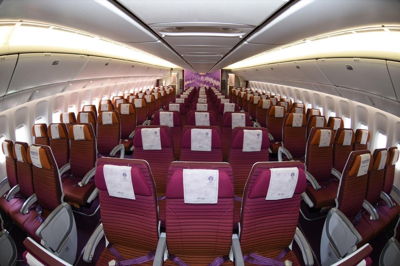 เครื่องบินแบบโบอิ้ง 777-300ER ทั้ง 3 ลำ ให้บริการ 3 ชั้นโดยสาร ได้แก่ ชั้นหนึ่ง 8 ที่นั่ง ชั้นธุรกิจ ที่สามารถปรับเก้าอี้เอนนอนราบได้ 180 องศา 40 ที่นั่ง และชั้นประหยัด 255 ที่นั่ง มีการออกแบบการใช้พื้นที่ภายในอย่างมีประสิทธิภาพ เพื่อการเก็บสัมภาระของผู้โดยสารและเพิ่มความสะดวกสบายมากขึ้น พร้อมระบบสาระบันเทิงรุ่นใหม่ล่าสุด Panasonic EX3 หน้าจอ full HD ที่ให้ความคมชัดและหน้าจอที่ใหญ่ขึ้น พร้อมทั้ง USB port ที่สามารถชาร์จ iPad ได้ มีระบบ Wi-Fi เพื่อการเชื่อมต่ออินเทอร์เน็ตที่รวดเร็วกว่าเดิม ด้วยระบบ KU band