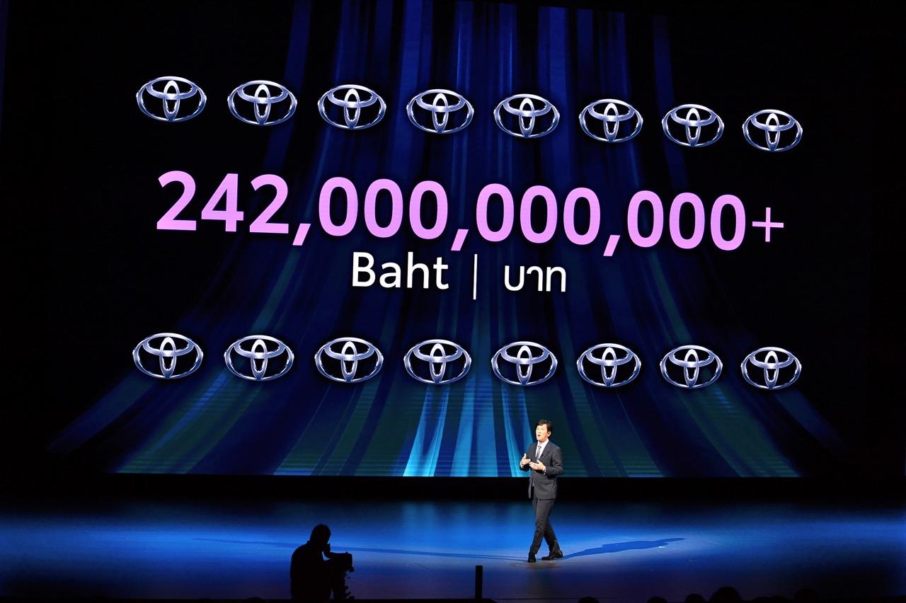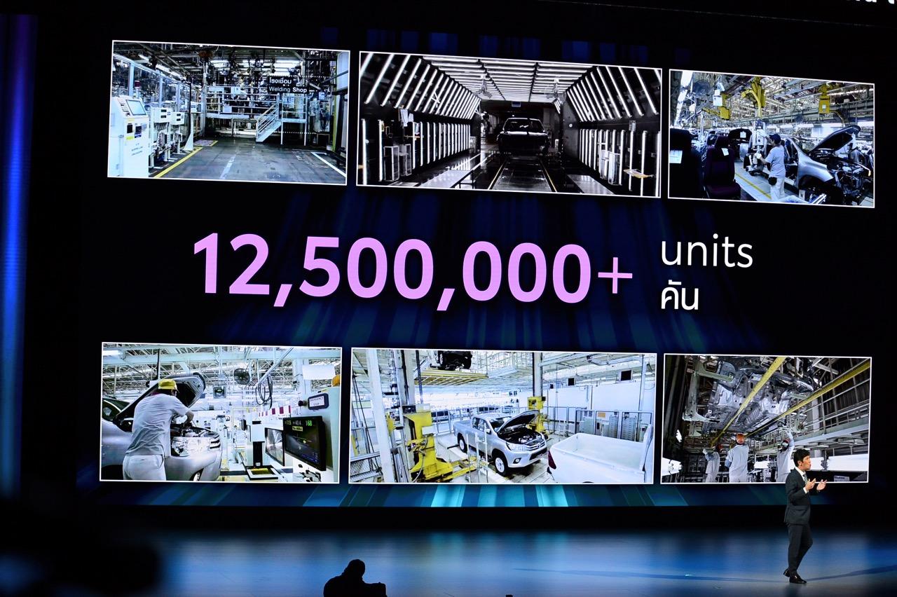 Akio Toyoda กรรมการผู้จัดการใหญ่ Toyota Motor Corporation ประเทศญี่ปุ่น กล่าวว่า “วันนี้ ผมขอขอบคุณทุกท่านจากใจจริง Toyota ได้เติบโตในประเทศไทยโดยมีคนไทยทุกท่านเป็นส่วนสำคัญที่ทำให้เราได้มีโอกาสได้เฉลิมฉลองในวันนี้ สำหรับตัวผมเอง มันไม่ใช่เรื่องของ จำนวนยอดขายรถที่เราทำได้ที่นี่ สิ่งที่เราต้องการมอบให้ประเทศนี้มีมากกว่าแค่รถยนต์ เช่น การช่วยสนับสนุนโอกาสทางเศรษฐกิจ ดังเช่น ความตั้งใจที่เราเลือกให้ประเทศไทยเป็นศูนย์กลางการผลิตรถรุ่นใหม่ระดับโลกภายใต้โครงการไอเอ็มวี”