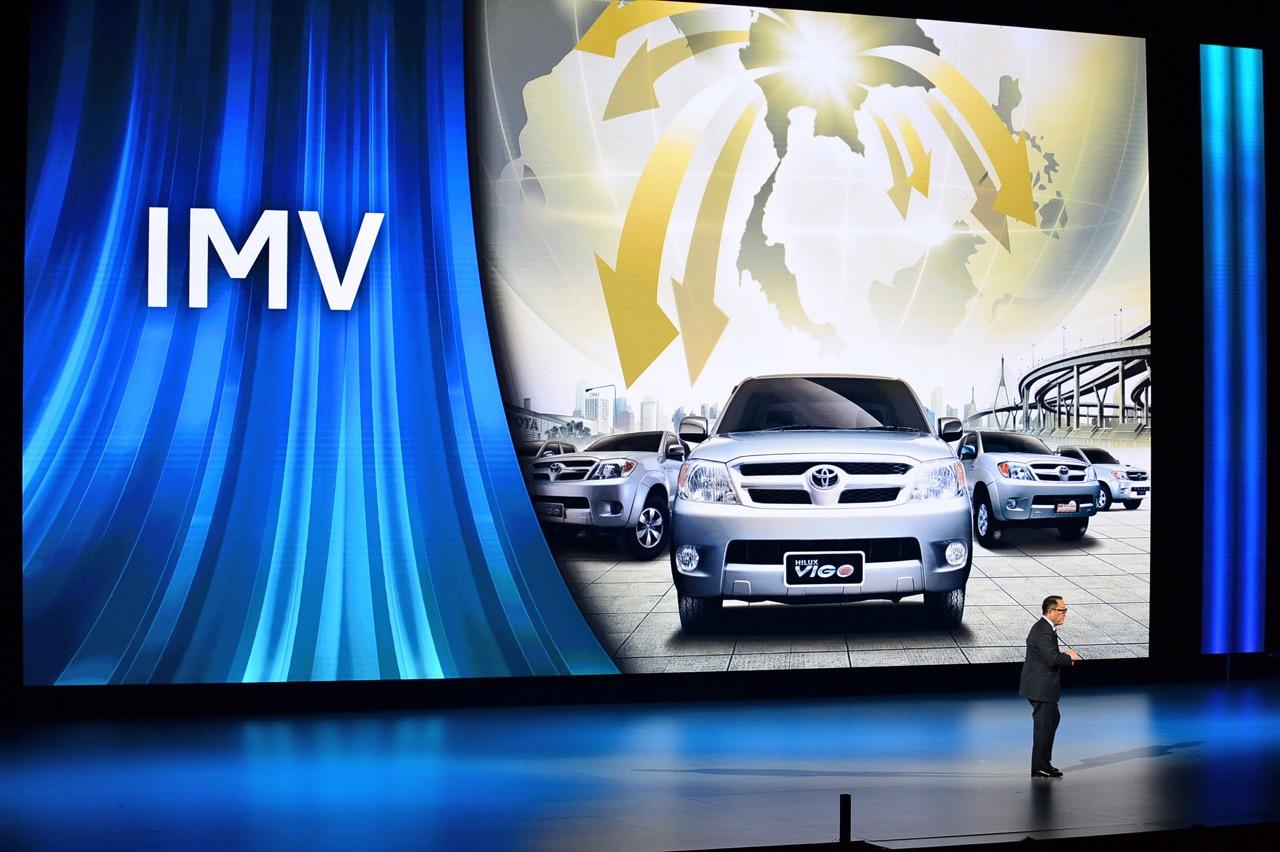 “การแนะนำรถกระบะ Hilux VIGO ภายใต้โครงการ IMV ยังคงเป็นความทรงจำที่ผมประทับใจมากที่สุดครั้งหนึ่งในชีวิตการทำงานของผม เพื่อเป็นการแสดงความขอบคุณ ผมจึงตัดสินใจที่จะสร้างรถ IMV แบบใหม่ เพื่อให้เป็นรถกระบะสำหรับประเทศไทย ได้แก่รถต้นแบบใหม่ล่าสุด IMV 0 (ไอเอ็มวี ซีโร่) และ รถต้นแบบ Hilux REVO BEV พร้อมระบบขับเคลื่อนพลังงานไฟฟ้า ทั้งสองรุ่น แสดงถึงแง่มุมที่แตกต่างในเชิงยนตรกรรม ซึ่งตอบสนองความต้องการที่แตกต่างกันและเหมาะกับลูกค้าคนละกลุ่ม รุ่นหนึ่งถูกออกแบบมาเพื่อส่งเสริมการเจริญเติบโตทางเศรษฐกิจ ส่วนอีกรุ่นถูกพัฒนาขึ้นเพื่อส่งเสริม การบรรลุความเป็นกลางทางคาร์บอน และรักษาสิ่งแวดล้อมให้ดียิ่งขึ้น”