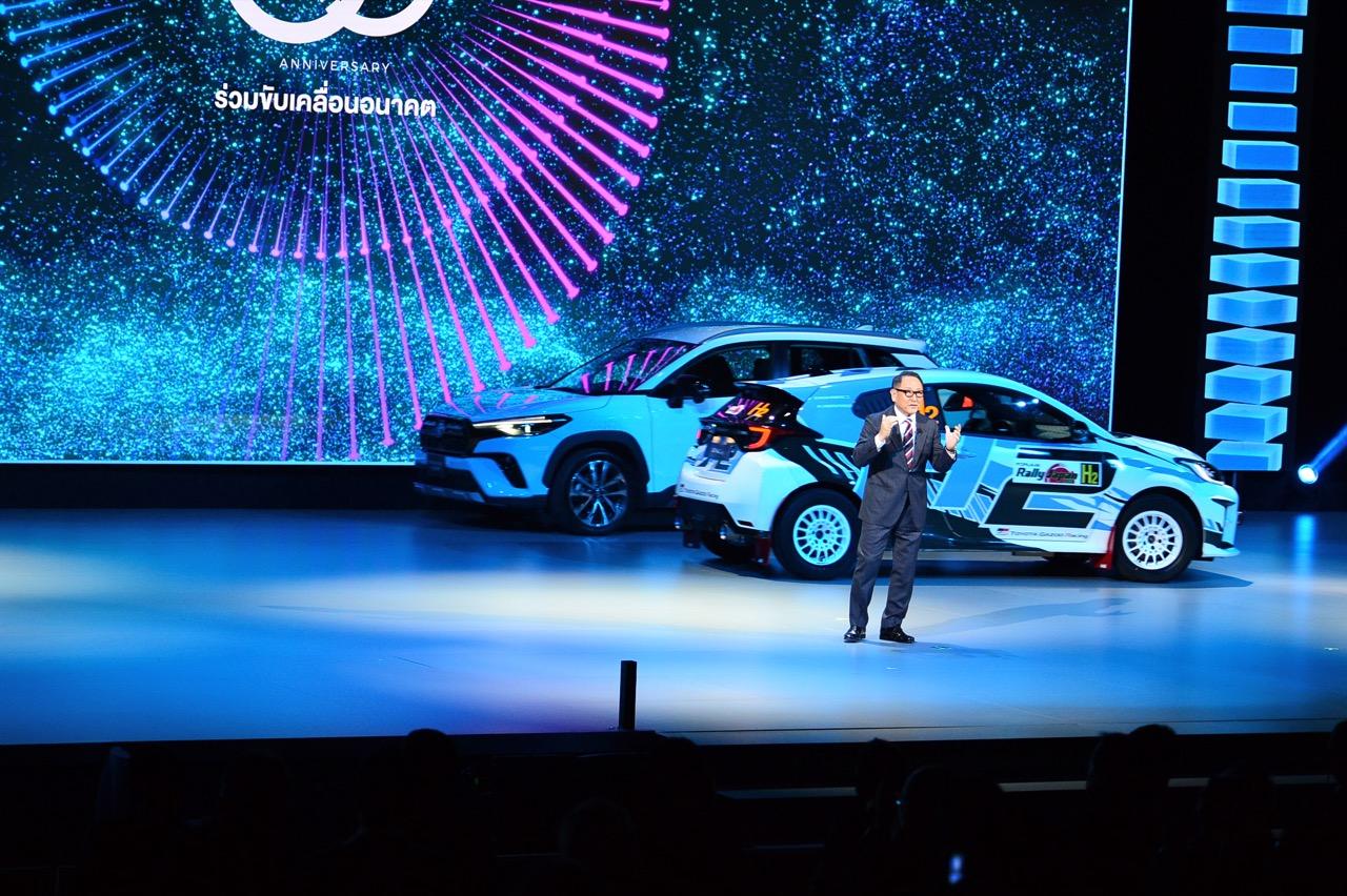 ทั้งนี้ เพื่อเป็นการเน้นย้ำถึงการเตรียมความพร้อมการขับเคลื่อนยุคหน้าภายใต้แนวทาง Multi – Pathway Toyota ยังได้นำต้นแบบยานยนต์เครื่องยนต์สันดาปภายในที่ใช้เชื้อเพลิงไฮโดรเจน (HICEV : Hydrogen Internal Combustion Engine Vehicle) มาเผยโฉมต่อสาธารณชนเป็นครั้งแรกในภูมิภาคเอเชีย เพื่อสะท้อนถึงความมุ่งมั่นของ Toyota ในการบรรลุเป้าหมายความเป็นกลางทางคาร์บอน เพื่อเพิ่มทางเลือกแก่ผู้คนโดยไม่จำกัดที่การใช้พลังงานใดพลังงานหนึ่ง ด้วยแนวคิดนี้ ส่งผลให้ยอดขายรถยนต์พลังงานผสม ทั้งไฮบริด ปลั๊กอินไฮบริดและรถยนต์พลังงานไฟฟ้าของ Toyota ในประเทศไทย ตั้งแต่เปิดจำหน่ายมาจนถึงปัจจุบัน มีมากกว่า 150,000 คัน มีส่วนช่วยในการลดการปล่อยก๊าซคาร์บอนไดออกไซด์กว่า 800,000 ตัน เทียบเท่ากับปลูกป่าบนพื้นที่ขนาด 97,000 ไร่ หรือ เทียบเท่ากับการปลูกต้นไม้กว่า 2.4 ล้านต้น