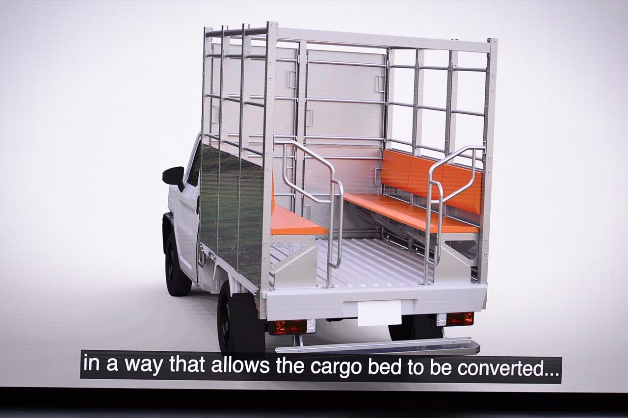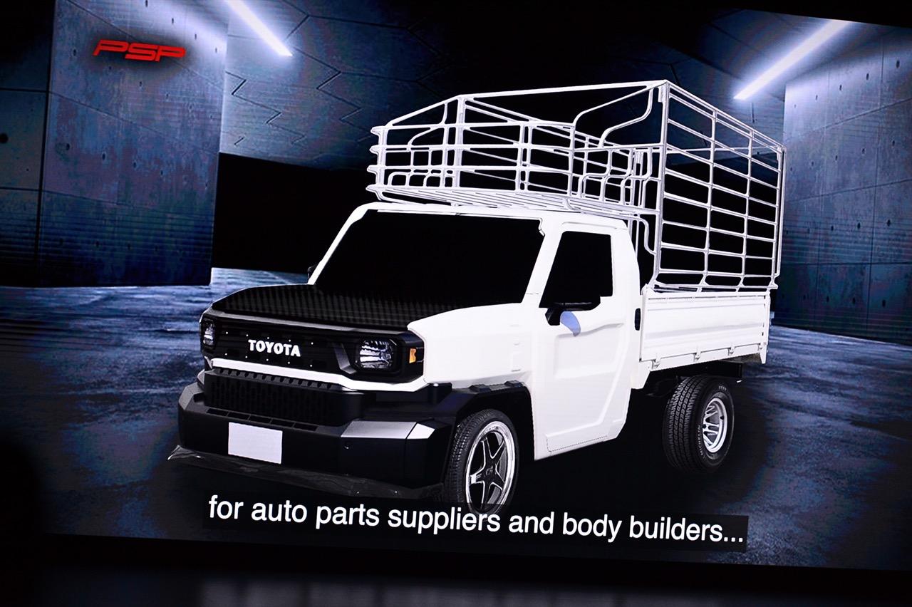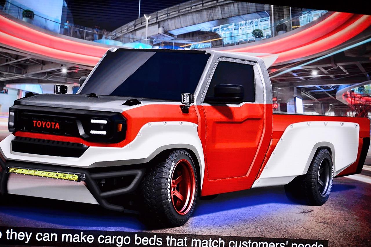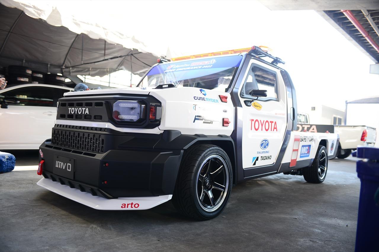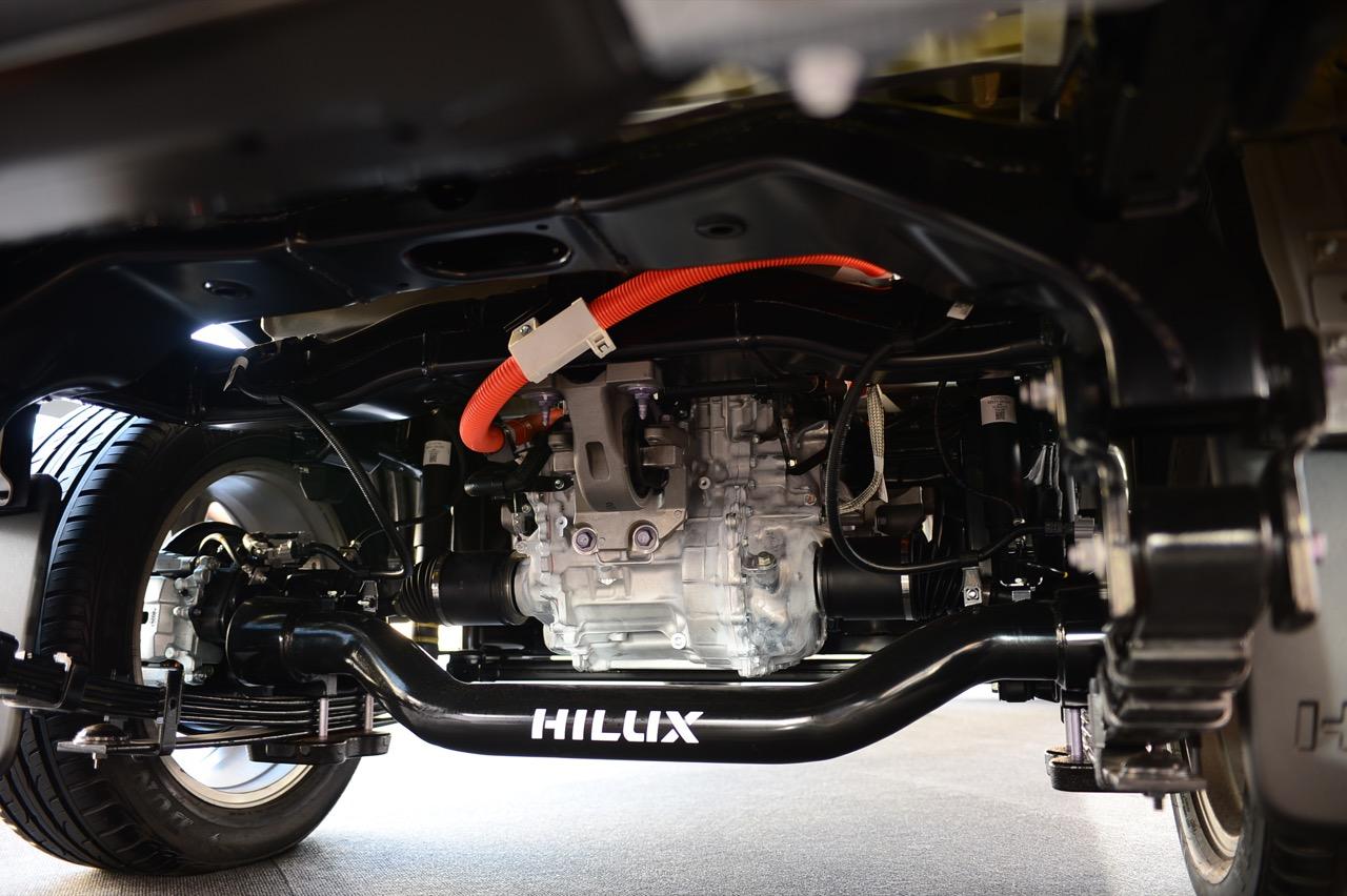 และในกลุ่มลูกค้าที่มีขนาดใหญ่มากของไทย ก็คือกลุ่มรถกระบะ รถบรรทุกขนาดเล็กนั้น ทาง Toyota ก็มีของเตรียมไว้ให้เช่นกัน อย่างแรกก็คือรถต้นแบบ Hilux Revo BEV ซึ่งนำ Revo ตอนเดียวมาทำเป็นรถกระบะไฟฟ้า ซึ่งวางมอเตอร์ขับเคลื่อนไว้ระหว่างล้อคู่หลัง วางแบตเตอรี่ไว้ท้ายรถ