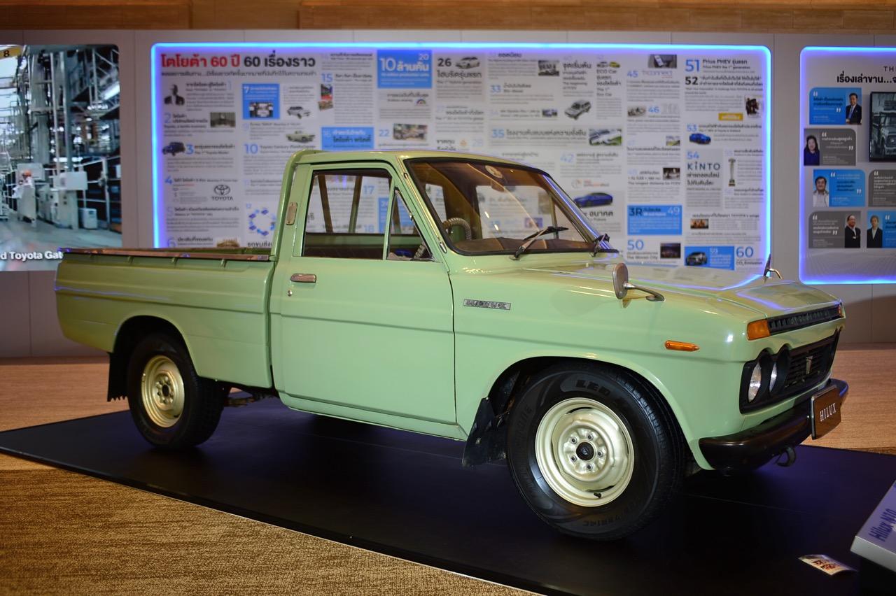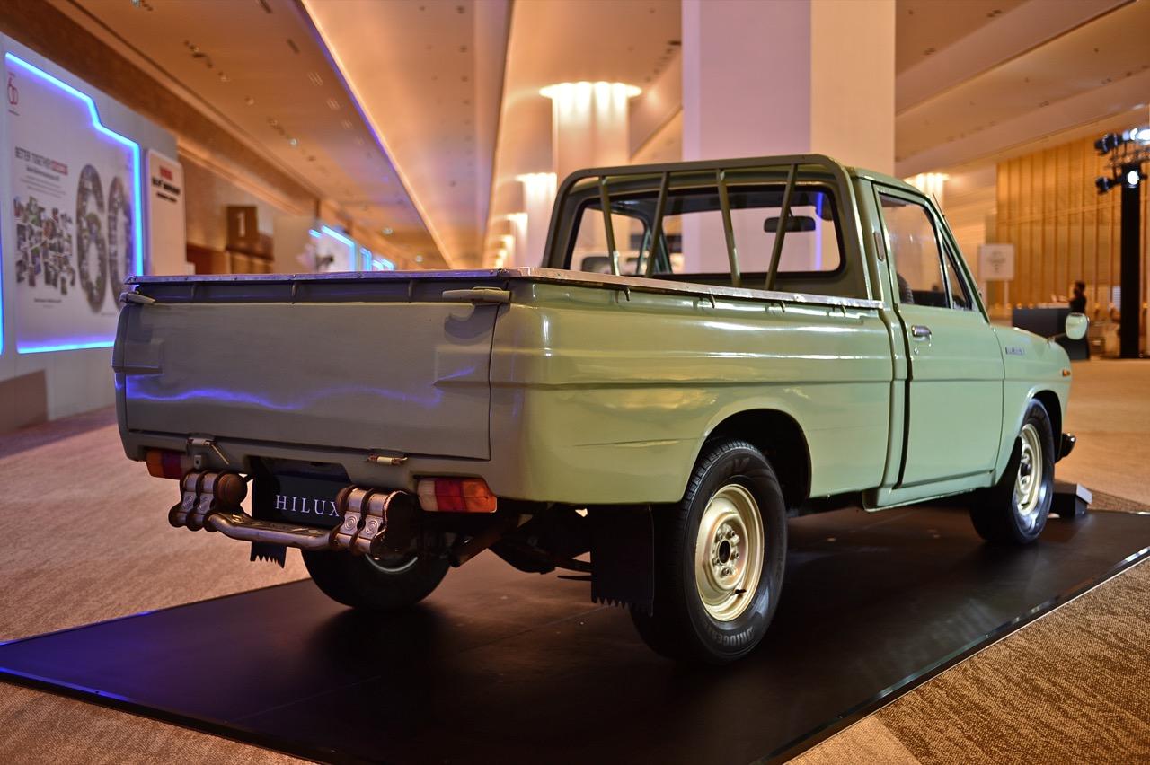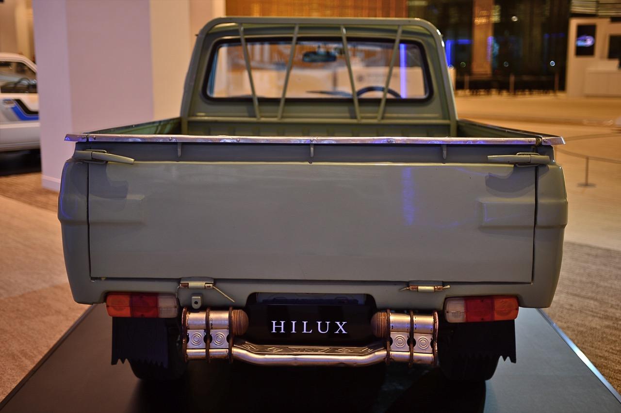 Hilux รุ่นแรกสุด เป็นรถปิกอัพคอมแพคที่ประกอบไปด้วยความสามารถในด้านการใช้งาน ทุกอย่างของมันดูเรียบง่ายและแข็งแรง การออกแบบแชสซีเฟรมที่แข็งแกร่ง พร้อมระบบกันสะเทือนแบบคอยล์สปริงปีกนกคู่ที่ด้านหน้าและแหนบเพลาแข็งที่ด้านหลัง เพื่อประสบการณ์การขับขี่ที่สมดุลและมั่นคงราบรื่น เป็นรถกระบะฐานล้อสั้นที่มีเครื่องยนต์เบนซิน 4 สูบ 1.5 ลิตร ส่งกำลังด้วยเกียร์ธรรมดา 4 จังหวะแบบ Columshift เบาะนั่งสำหรับคนขับและผู้โดยสารสูงสุดสามคน สามารถบรรทุกสัมภาระได้มากถึง 1,000 กิโลกรัม.