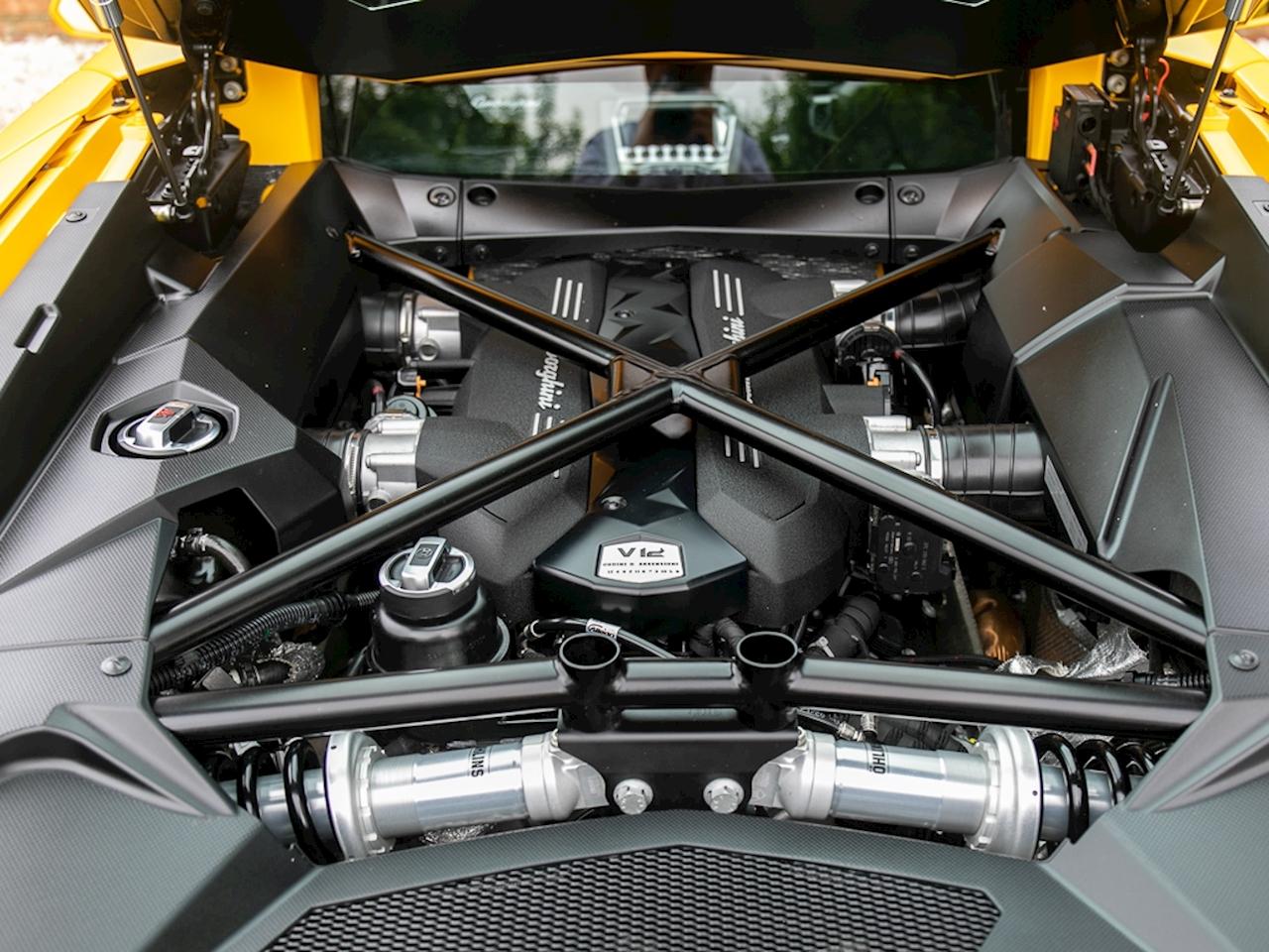 เครื่องยนต์ของ Aventador เปิดตัวในปี 2011 ให้กำลังเครื่องยนต์ 690 แรงม้า ที่ 8,250 รอบต่อนาที ความจุ 6.5 ลิตร ต่อมามีการปรับแต่งสำหรับใช้กับ Lamborghini รุ่น LP 700-4 ในปี 2013 รุ่น LP 750-4 ในปี 2015 และรุ่น Superveloce ในปี 2016 รุ่น SVJ ในปี 2019 กำลังเครื่องยนต์เพิ่มขึ้นเป็น 759 แรงม้า ในปี 2021 รุ่น Ultimae ซุปเปอร์คาร์สายถนนรุ่นสุดท้ายในตระกูล Aventador มีกำลังเครื่อง 780 แรงม้า เครื่องรุ่นเดียวกันนี้ยังถูกติดตั้งใน Essenza ซึ่งใช้วิ่งในสนามแข่งเท่านั้น และไม่ถูกจำกัดด้วยข้อกำหนดด้านมลพิษสำหรับการใช้งานบนถนน ในการปรับแต่ง เพิ่มกำลังเครื่องเป็น 830 แรงม้า เป็นความประทับใจในแวดวงวิศวกรรมยุคใหม่อย่างแท้จริง การนำเสนอเครื่องยนต์ V12 รุ่นสูงสุดท้ายอยู่ใน Essenza V12 เครื่องยนต์แบบเดียวกัน แต่ให้กำลัง 830 แรงม้า เครื่องยนต์ยังเหมือนเดิม แต่แรงดันย้อนกลับของท่อไอเสียลดลง เนื่องจากไม่ต้องติดฟิลเตอร์และอุปกรณ์ฉนวนกันเสียงส่วนฟิลเตอร์อากาศเข้า ทำให้มีอัตราการลดความดันที่น้อยลง ได้ประสิทธิภาพเชิงปริมาณที่สูงขึ้น จากมุมมองด้านการผลิต เครื่องยนต์ V12 คือข้อพิสูจน์ว่าการพัฒนาเครื่องยนต์ที่ดีตั้งแต่เริ่มต้น สามารถสร้างสรรค์เป็นเอกลักษณ์ ทั้งแง่สุนทรียศาสตร์ และกำลังเครื่องยนต์ ซึ่งถือเป็นความสำเร็จที่ยอดเยี่ยม