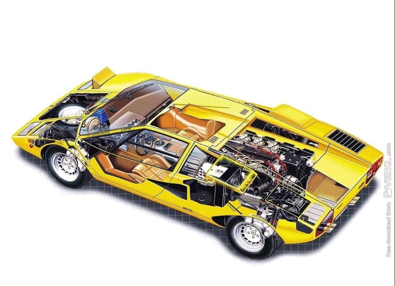 การคิดค้นเพลาลูกเบี้ยวคู่ ซึ่งเป็นการออกแบบเพลาลูกเบี้ยวแบบใหม่สำหรับเครื่องยนต์เป็นครั้งแรก เพิ่มมุมองศารูปตัว “V” ของเครื่องพร้อมจุดศูนย์ถ่วงที่ต่ำลง โดยเลือกติดตั้งเครื่องยนต์แนวขวางบริเวณกลางส่วนท้ายของรถยนต์ Miura เพื่อให้มีการกระจายน้ำหนักที่ดีขึ้นและทำให้ระยะช่วงล้อสั้นลง โครงของกระปุกเกียร์และเฟืองท้ายยังถูกผสานเป็นหนึ่งเดียวกับระบบส่งกำลัง เพื่อช่วยให้การประกอบชิ้นส่วนต่างๆ โดยรวมของซุปเปอร์สปอร์ตคาร์ระดับตำนานนี้มีความกะทัดรัดและมั่นคงยิ่งขึ้น