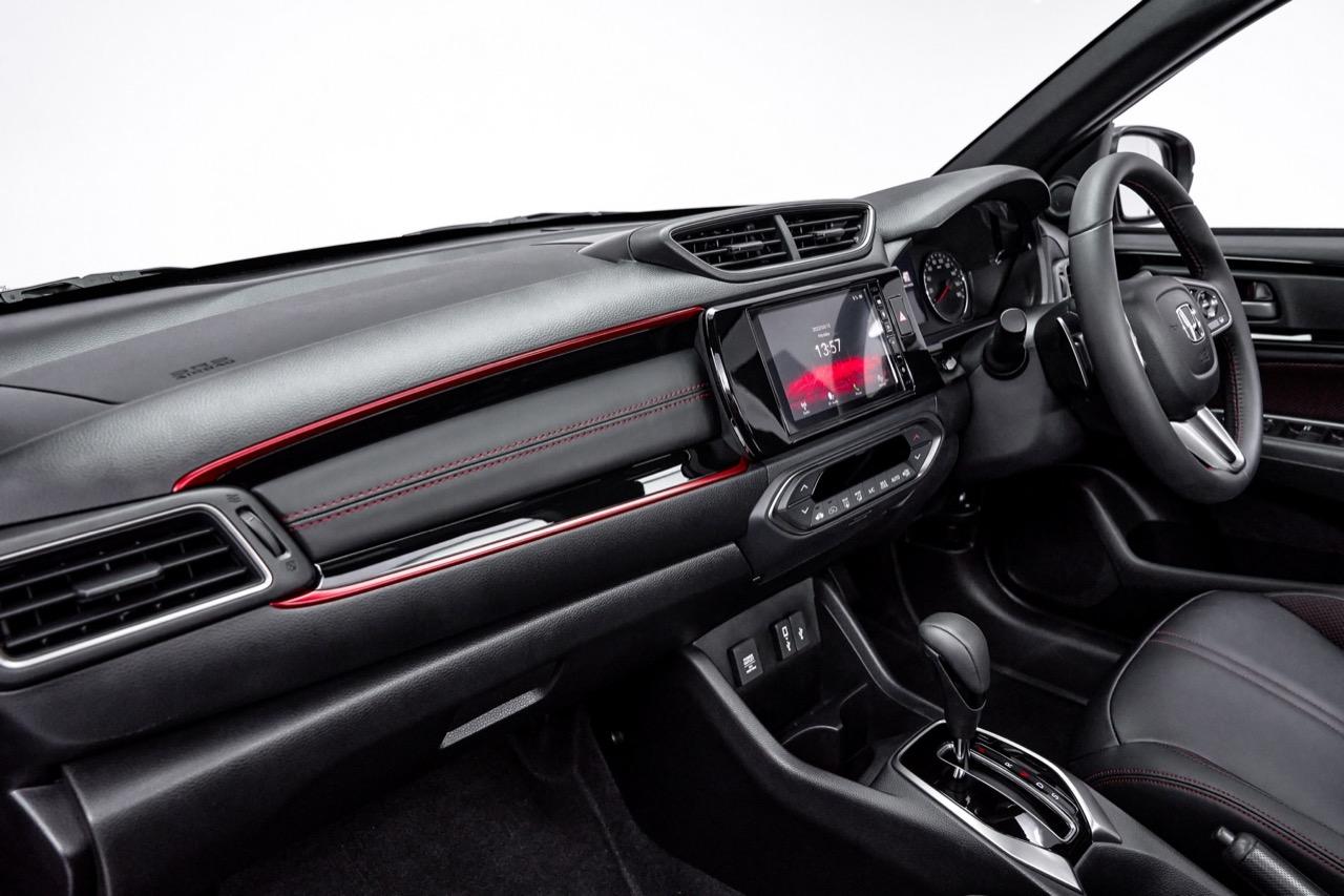 วัสดุตกแต่งภายในสีดำ Piano black และตกแต่ง Piano black แถบสีแดง