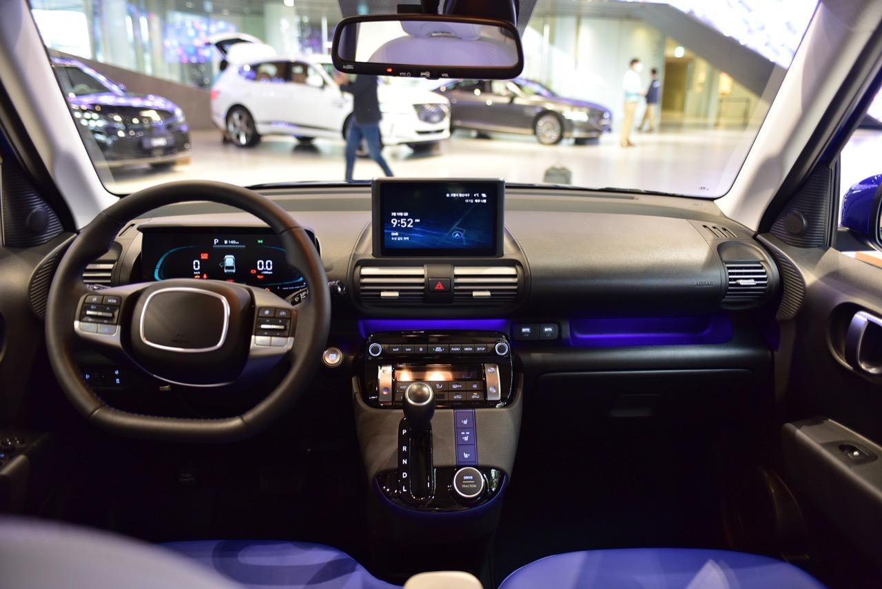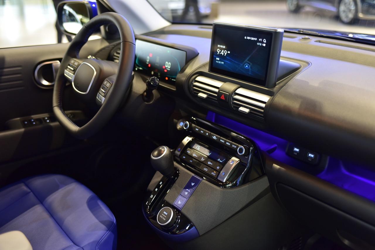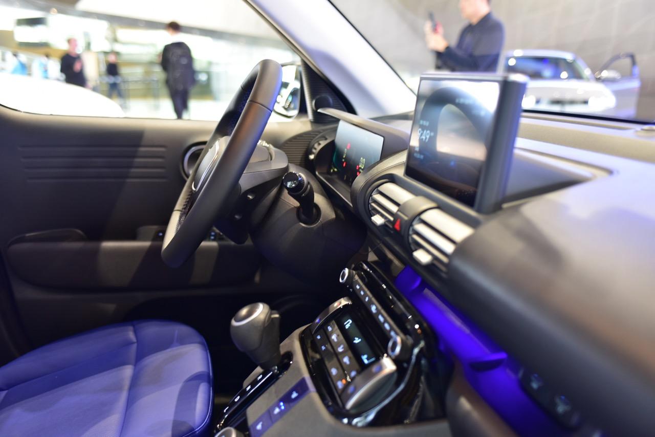 Hyundai Casper 2023 ผีน้อยแคสเปอร์สีน้ำเงินสว่างตา ตกแต่งภายในด้วยโทนสีขาว ฟ้า และน้ำเงิน รถเล็กน่ารักสไตล์ MINI Crossover จอดโชว์ตัวอยู่ในสำนักงานของแบรนด์ Hyundai ที่โซล เกาหลีใต้ เห็นคนเกาหลีบ่นว่าแพง Hyundai Casper วางเครื่องยนต์สามสูบ 1.0 ลิตร เทอร์โบ 998 ซีซี กำลัง 100 แรงม้า 172 นิวตันเมตร ความจุถังเชื้อเพลิง 35 ลิตร อัตราสิ้นเปลือง 24.5-26.5 กิโลเมตรต่อลิตร น้ำหนัก 1,060 กิโลกรัม