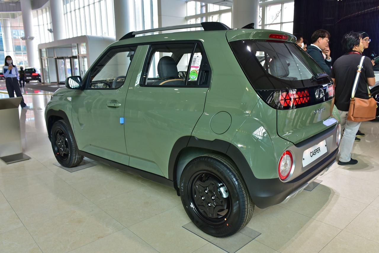 Casper วางจำหน่ายอย่างเป็นทางการเมื่อวันที่ 3 กุมภาพันธ์ พ.ศ.2565 การออกแบบสไตล์ iKONIC และข้อกำหนดด้านความปลอดภัยกับความสะดวกสบายที่มีอยู่นั้นไว้ใจได้ พื้นที่เก็บสัมภาระ เมื่อพับเบาะหลังจะมีความจุ 940 ลิตร การปั๊มขึ้นรูปโลหะด้วยความร้อน ซึ่งเป็นวิธีการประกอบแชสซีที่มีน้ำหนักเบา ถูกนำไปใช้กับพื้นที่หลัก เพื่อลดการเสียรูปของตัวถัง ในกรณีที่เกิดการชนกัน ความแข็งแกร่งในการต้านทานแรงบิดและค่าความต้านทานแรงดึงเฉลี่ยเพิ่มขึ้น ผ่านตัวถังน้ำหนักเบาที่มีความแข็งแรงสูง เป็นการออกแบบยุคใหม่ของค่ายกิมจิที่สวยงามน่าใช้เหมาะกับวัยรุ่นที่ชอบความแนวของยานพาหนะ