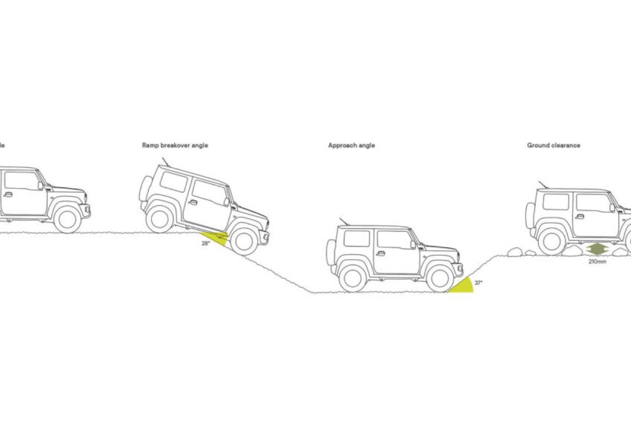 ในโลกใบนี้ มีรถหลายคันที่ขยับมิติความยาวของตัวถังมากกว่า 5 เมตร แต่ Suzuki Jimny มีขนาดความยาวเพียงแค่ 3,480 มิลลิเมตร ทำให้ Jimny มีขนาดกะทัดรัด ระยะห่างจากพื้นถึงใต้ท้องรถ 210 มิลลิเมตร ดูเหมือนไม่มาก แต่ฐานล้อที่สั้นจู๋กับระยะโอเวอร์แฮงก์สั้นกุด ทำให้ Jimny สามารถเอาตัวรอดด้วยการปีนหินก้อนโตๆ หรือดันตัวเองขึ้นจากหล่มโคลน โดยไม่เคยทำให้คลัตช์มีกลิ่นเหม็นไหม้ ภายนอกนั้นดูดี แต่ภายในมีพื้นที่ใช้สอยไม่มากนัก เมื่อพับเบาะหลังราบลง ความจุในการเก็บสัมภาระที่มีเพียงแค่ 85 ลิตร จะเพิ่มเป็น 830 ลิตร มากพอที่จะใส่อะไรก็ตามที่ทำให้คุณและกิ๊กสามารถอาศัยอยู่ในป่าดิบชื้นหรือทะเลทราย ที่รกร้างว่างเปล่านานเป็นอาทิตย์ สไตล์ภายนอกนั้นดูคล้ายกับ Mercedes-Benz G-Class ที่ถูกย่อสัดส่วนให้เล็กลง ทำให้บุคลิกของรถดูโดดเด่นไม่ซ้ำใคร ความเท่และศักยภาพในการลุยฝ่าทางวิบาก ทำให้ Jimny ได้รับความนิยมมานานกว่า 30 ปี