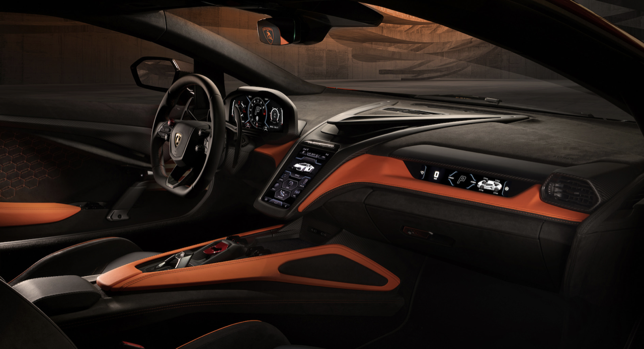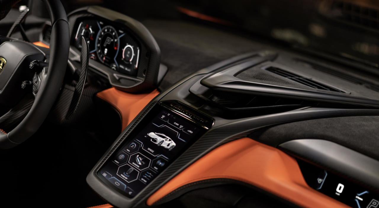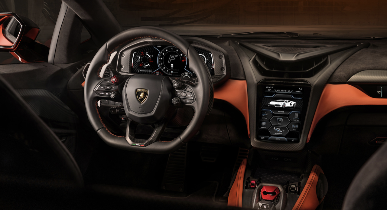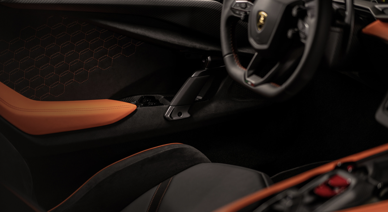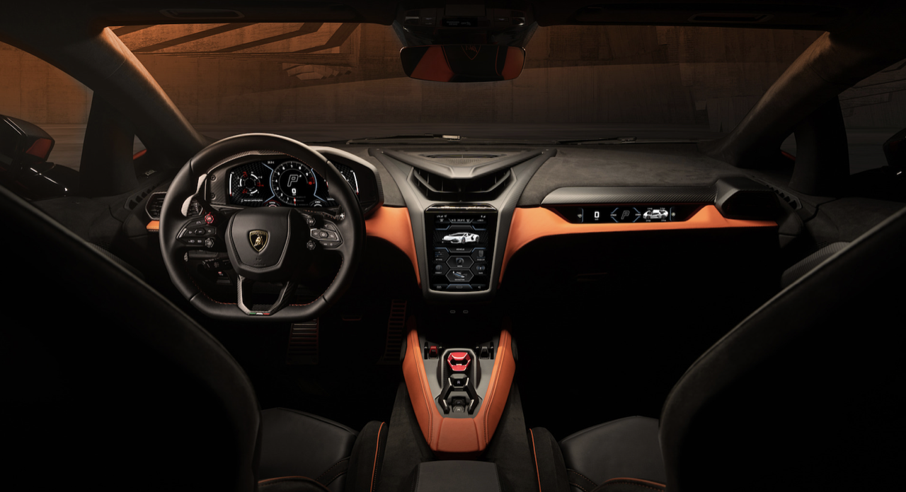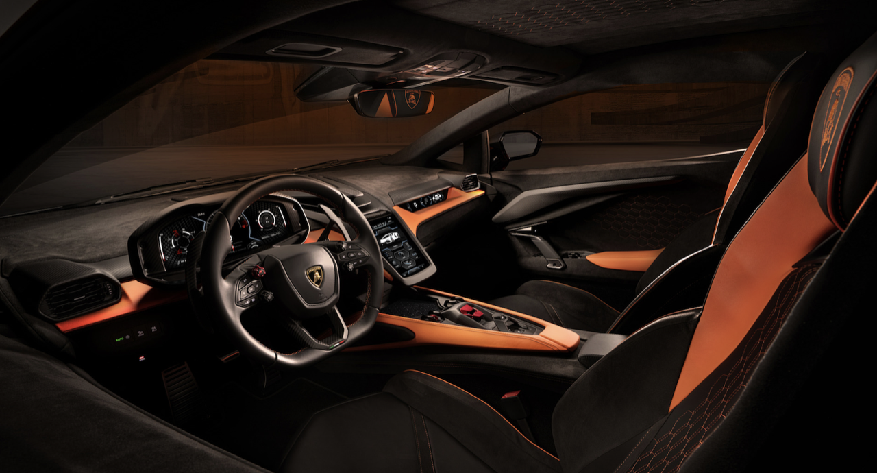 มาตรฐานการออกแบบภายในที่กำหนดให้ผู้ขับมีความสำคัญตามปรัชญา ‘Feel like a pilot’ ของแบรนด์ การตกแต่งภายในยังสะท้อนถึงดีไซน์ใหม่แห่งโลกอนาคตของตัวรถภายนอก โดยทุกองค์ประกอบของห้องโดยสารยังคงแบบฉบับของลัมโบร์กินีอย่างชัดเจน โดยผสานดุลยภาพแห่งประสบการณ์ยุคดิจิทัลเข้ากับสัมผัสทางกายภาพได้อย่างสมบูรณ์แบบ ทั้งเพื่อการขับขี่ในชีวิตประจำวันและการพุ่งทะยานในสนามแข่ง จุดรวมสายตาในห้องโดยสารนำเสนอการใช้วัสดุคาร์บอนไฟเบอร์อย่างโดดเด่น ผ่านการออกแบบสไตล์ “ยานอวกาศ” ที่โอบล้อมช่องแอร์กลางและจอแสดงผลทัชสกรีนแนวตั้งขนาด 8.4 นิ้ว ซึ่งถือเป็นหัวใจแห่งเทคโนโลยีของรถยนต์รุ่นนี้