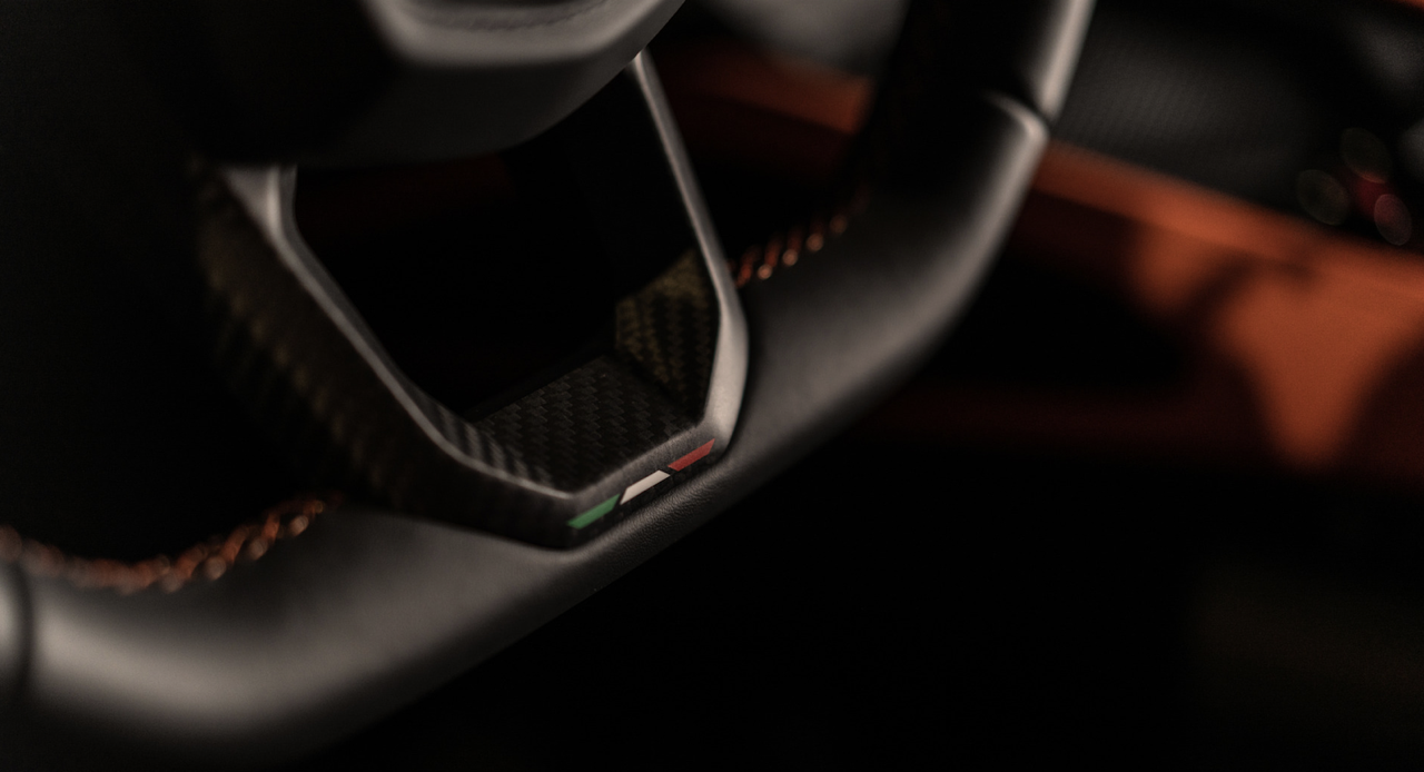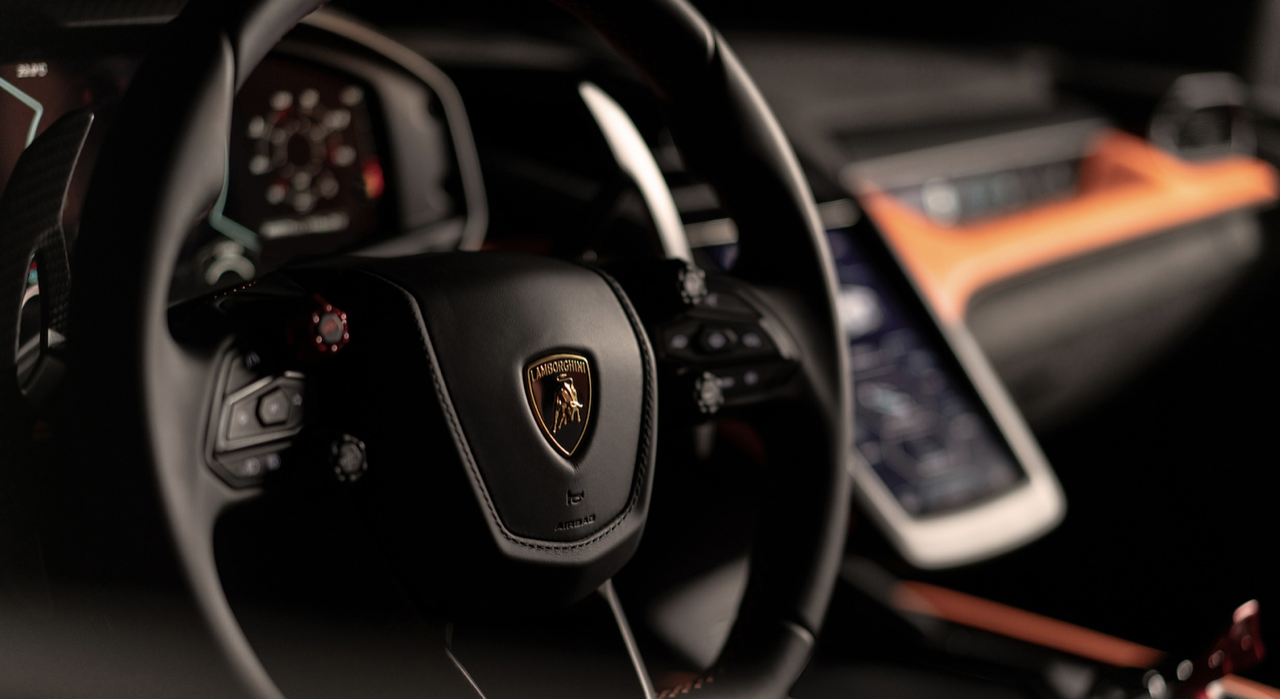 การออกแบบพวงมาลัยได้แรงบันดาลใจมาจากโลกมอเตอร์สปอร์ตและประสบการณ์จากรุ่น Essenza SCV12 ติดตั้งโรเตอร์สี่ตัวบนก้านพวงมาลัยเพื่อใช้เลือกทั้งโหมดการขับขี่และระบบยกตัวรถและการปรับระดับสปอยเลอร์หลัง การออกแบบห้องโดยสารและระบบควบคุม ให้ใช้งานง่าย มอบสัมผัสที่เป็นธรรมชาติ ปุ่มต่างๆ บนพวงมาลัยจะใช้เพื่อเปิดปิดสัญญาณเลี้ยวและควบคุมของฟังก์ชันต่างๆ ช่วยให้ผู้ขับสามารถจับพวงมาลัยได้อย่างมั่นคงตลอดเวลา