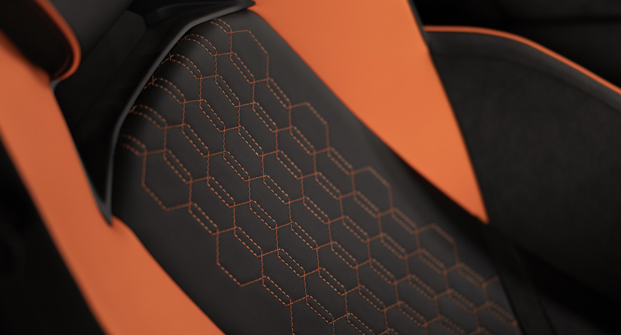 ห้องโดยสารใช้วัสดุคาร์บอนไฟเบอร์ ทั้งส่วนแผงหน้าปัด ช่องแอร์รูปหกเหลี่ยม รวมถึงกรอบแผงหน้าปัดและช่องแอร์กลาง หุ้มเบาะผสานการใช้หนังเนื้อละเอียดเข้ากับวัสดุสิ่งทอน้ำหนักเบาพิเศษ Corsa-Tex ผ้าไมโครไฟเบอร์ของ Dinamica® เป็นโพลีเอสเตอร์รีไซเคิล ด้วยกระบวนการผลิตแบบน้ำ สามารถตกแต่งห้องโดยสารได้ตามต้องการ หรือเลือกผสม ทั้งวัสดุหนังและ Corsa-Tex หรือเลือกวัสดุที่ต้องการเพียงอย่างเดียว และมีให้เลือกมากถึง 70 เฉดสี
