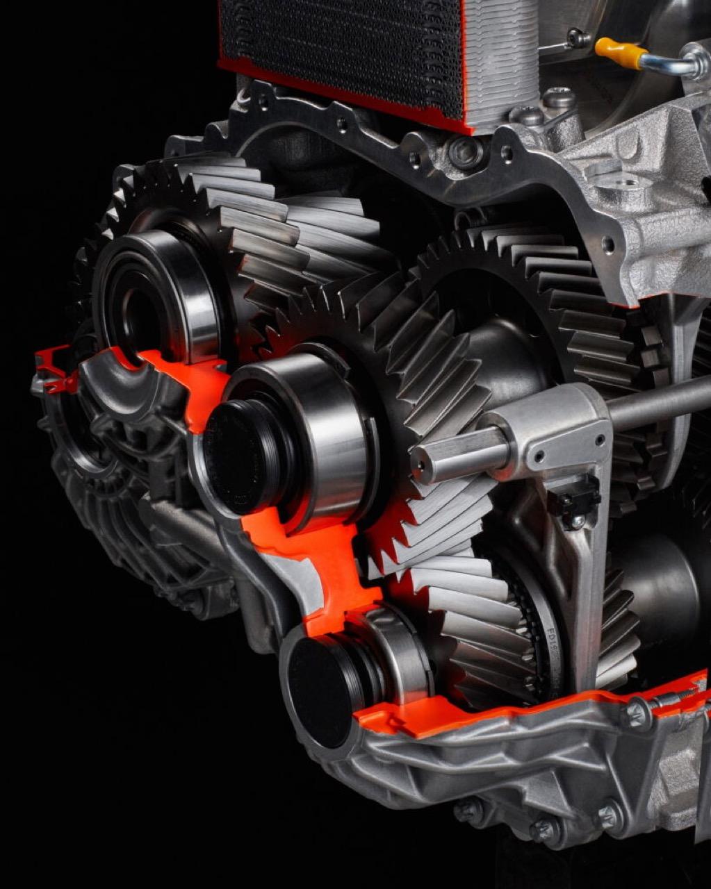 ระบบส่งกำลังดับเบิลคลัตช์ (Double Clutch Transmission: DCT) 8 สปีด เกิดจากแรงบันดาลใจในการสร้างสรรค์อุปกรณ์ที่จำเป็นสำหรับการขับแนวสปอร์ต การเปลี่ยนเกียร์ที่รวดเร็ว การทำงานร่วมกันของทั้ง 8 สปีด เพิ่มประสิทธิภาพการใช้เชื้อเพลิงและความสามารถในการขับ มีฟีเจอร์พิเศษอย่าง “การลดเกียร์ต่อเนื่อง ซึ่งสามารถลดเกียร์ทีละหลายสเต็ป เมื่อทำการเบรกได้อย่างง่ายดาย เพียงกดค้างที่แป้นด้านซ้าย ทำให้ผู้ขับรู้สึกถึงการควบคุมที่สมบูรณ์แบบ