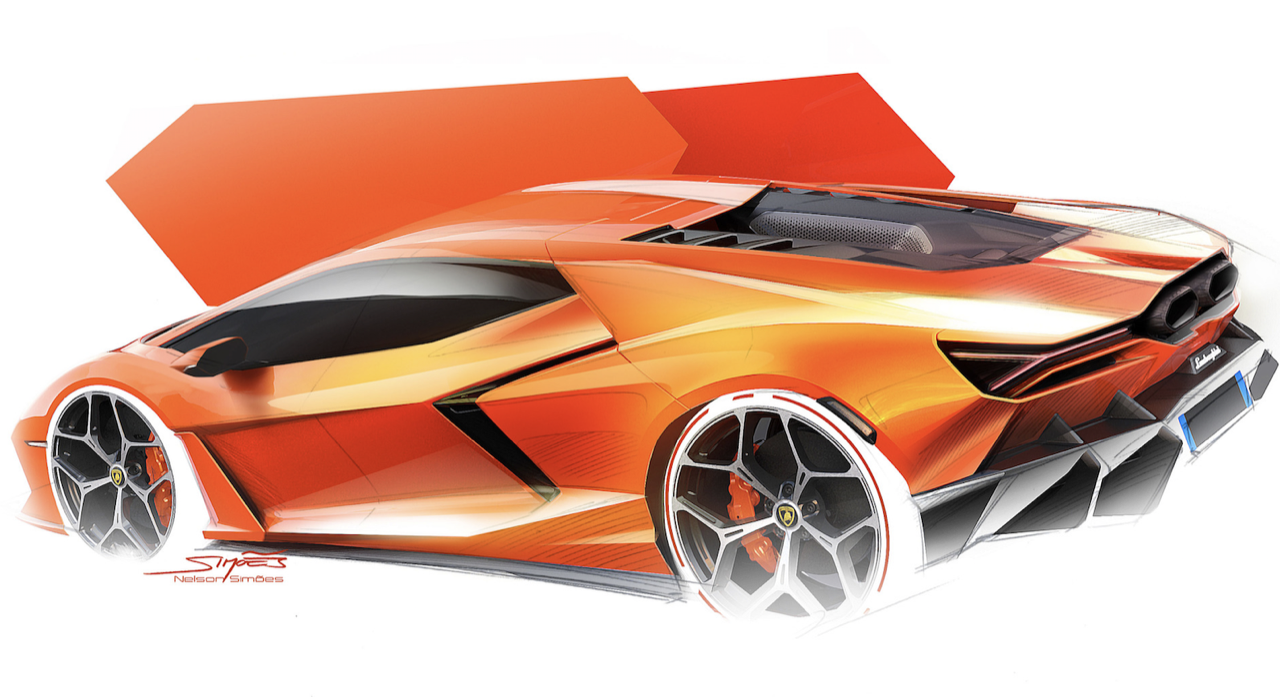 ดีไซน์ซิกเนเจอร์ของไฟหน้ารูปตัววาย Y สัญลักษณ์ของรถยนต์แฟล็กชิ ประดับไอคอนิกยุคใหม่ การออกแบบห้องโดยสารภายใน มีความล้ำหน้าแบบก้าวกระโดด ไปสู่การตีความทิศทางการออกแบบแนวใหม่ เห็นได้ถึงปรัชญา ‘Feel like a pilot’ รายละเอียด ทั้งผู้ขับและผู้โดยสารผสานเป็นหนึ่งเดียวกับดีไซน์รูปตัววาย Y ในส่วนของแผงหน้าปัดและคอนโซลกลาง จำลองสัมผัสของการขับรถแข่ง ทั้งระบบดิจิทัลและประสาทสัมผัสของร่างกาย การปรากฏตัวของ Revuelto เสมือนเปิดตัวยานอวกาศรุ่นใหม่ ด้วยการนำเสนอการออกแบบใหม่เพื่อรับมือความท้าทายในการพัฒนารถยนต์ไฟฟ้า ตลอดจนกำหนดรูปลักษณ์และสัดส่วนของรถที่จะเกิดขึ้นในอนาคตอันใกล้ ดีไซน์ได้นำแรงบันดาลใจมาจากอุตสาหกรรมการบิน มีคาแรกเตอร์เฉพาะตัว จากโครงสองเส้นสายหลักที่พาดผ่านจากด้านหน้า โอบล้อมห้องโดยสารและเครื่องยนต์ ลู่ลงสู่ชุดท่อไอเสียทรงหกเหลี่ยมในส่วนท้าย
