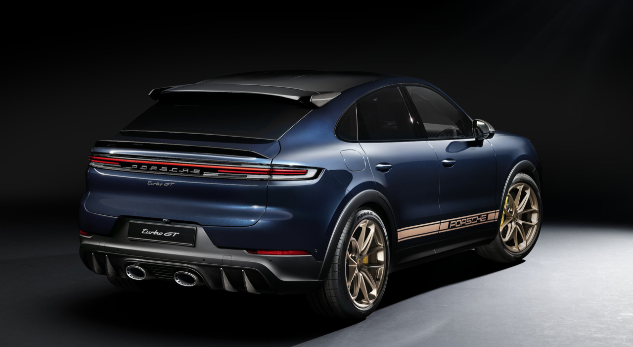 สำหรับนอกภูมิภาคยุโรป รุ่น เทอร์โบ จีที (Turbo GT) ได้รับการกำหนดให้เป็น New Cayenne เวอร์ชันที่มีสมรรถนะสูงสุด สำหรับการขับขี่แบบ on-road รับหน้าที่เป็นเอสยูวีรุ่นเรือธงในเกือบทุกตลาดที่มีการจำหน่าย Porsche Cayenne สามารถเลือกตัวถังแบบคูเป้ (coupé) และอุปกรณ์ ประจำรุ่นได้ทั้งหมด กำลังมหาศาล เพิ่มขึ้น 19 แรงม้า (14 กิโลวัตต์) รวมเป็น 659 แรงม้า (485 กิโลวัตต์) จากเครื่องยนต์ V8 เทอร์โบคู่ ขนาดความจุ 4 ลิตร อัตราเร่งจาก 0 ถึง 100 กิโลเมตรต่อชั่วโมง ภายใน 3.3 วินาที มความเร็วสูงสุดกว่า 305 กิโลเมตรต่อชั่วโมง