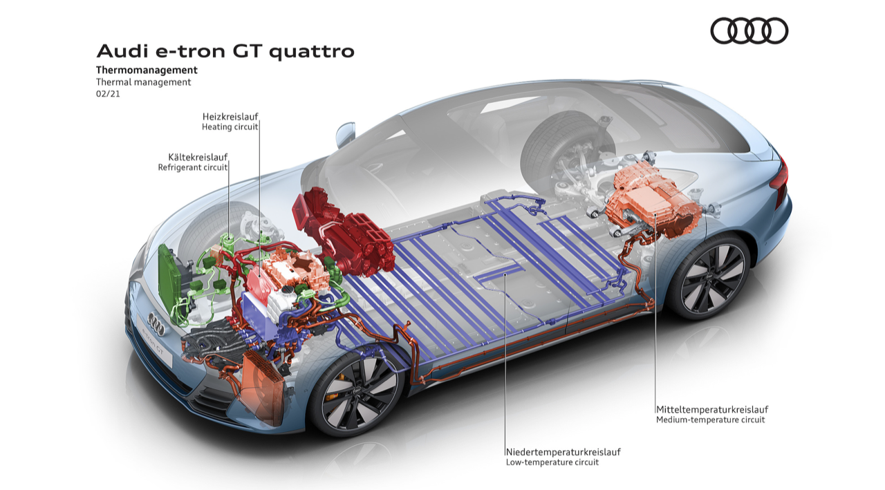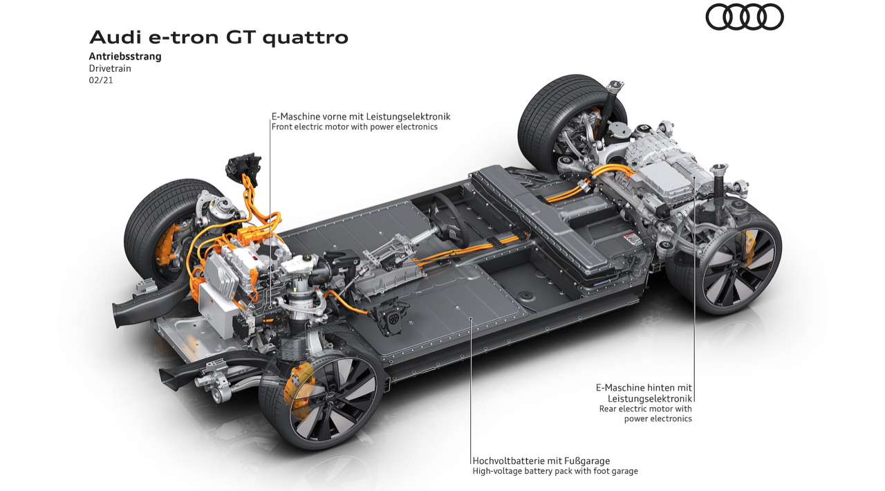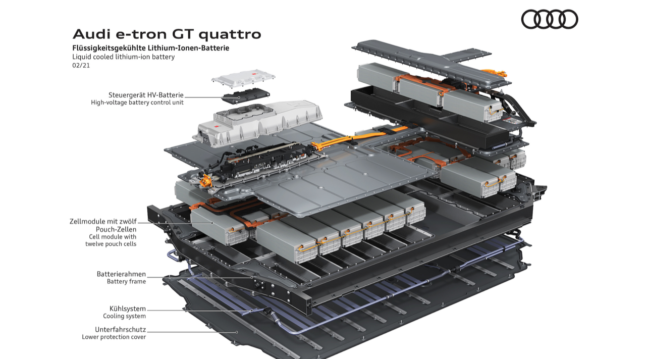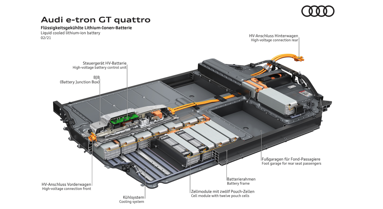 สำหรับแบตเตอรี่แรงดันสูงที่บรรจุอยู่ในรถยนต์ของ Audi ถูกผลิตขึ้นมาในรูปแบบของแบตเตอรี่โมดูล (Battery Module) ถึงแม้ว่ารูปแบบดังกล่าวจะมีความซับซ้อนและมีต้นทุนที่สูงในการผลิต แต่มีข้อดีสำหรับผู้บริโภค คือ สามารถที่จะทำการเปลี่ยนแบตเตอรี่เฉพาะ Module ที่เสียหายได้ ไม่ต้องเปลี่ยนทั้งหมด ทำให้ลดค่าใช้จ่ายในการซ่อมบำรุง