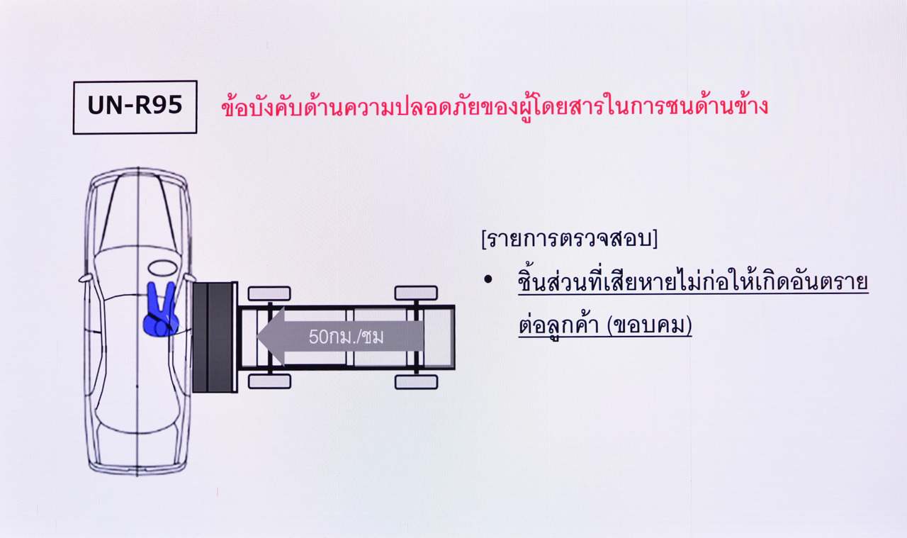 ดร. ณัฐพลฯ กล่าวว่า มาตรฐานด้านความปลอดภัยมีความสำคัญต่อประชาชนผู้ใช้รถยนต์ จึงกำหนดเป็นคุณสมบัติหนึ่งของโครงการรถยนต์ประหยัดพลังงานมาตรฐานสากล (ECO Car) ทั้งนี้ ในปัจจุบัน สำนักงานมาตรฐานผลิตภัณฑ์อุตสาหกรรม (สมอ.) อยู่ระหว่างการดำเนินงานออกประกาศกำหนดให้คุณสมบัติในการป้องกันผู้โดยสารกรณีที่เกิดจากอุบัติเหตุการชนด้านข้าง (UN R95) และคุณสมบัติในการป้องกันผู้โดยสารกรณีที่เกิดจากอุบัติเหตุการชนด้านหน้า (UN R94) ให้เป็นมาตรฐานบังคับสำหรับรถยนต์นั่งทุกประเภท รวมทั้ง อยู่ระหว่างการจัดซื้ออุปกรณ์และเครื่องมือทดสอบมาตรฐานด้านหน้าและด้านข้าง เพื่อให้บริการทดสอบที่ศูนย์ทดสอบยานยนต์และยางล้อแห่งชาติ (ATTRIC) ณ อำเภอสนามชัยเขต จังหวัดฉะเชิงเทรา