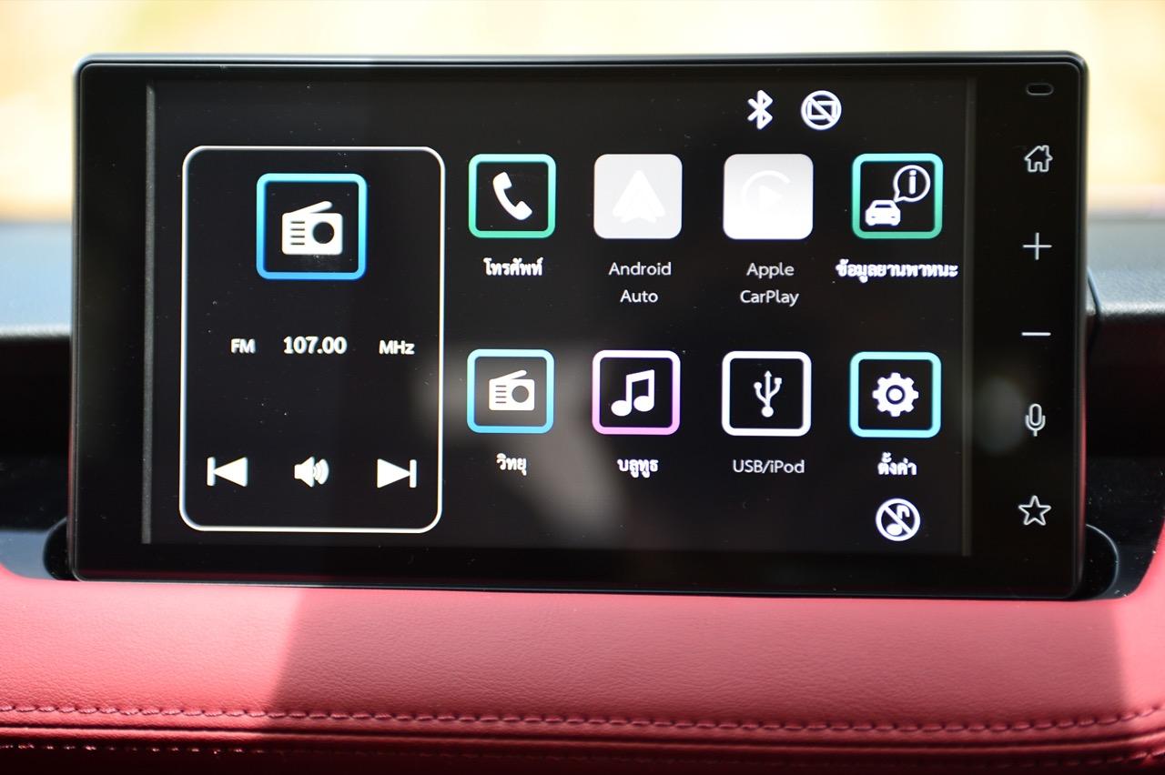 จอภาพมอนิเตอร์กลางของระบบอินโฟเทนเมนต์ ขนาด 9 นิ้ว ยกเว้นรุ่นต่ำสุดหรือรุ่น Sport จะได้จอกลางขนาด 8 นิ้ว รองรับการเชื่อมต่อ Apple CarPlay และ Android Auto เครื่องเสียง Pioneer เสียงดังฟังชัดเจนกับลำโพง 6 ตำแหน่ง ช่องแอร์ด้านหลังในรุ่น Premium และ Premium Luxury