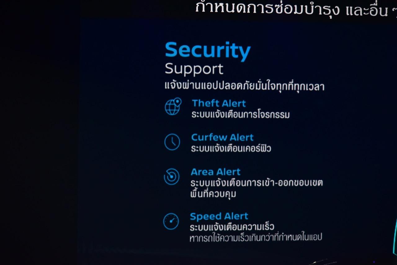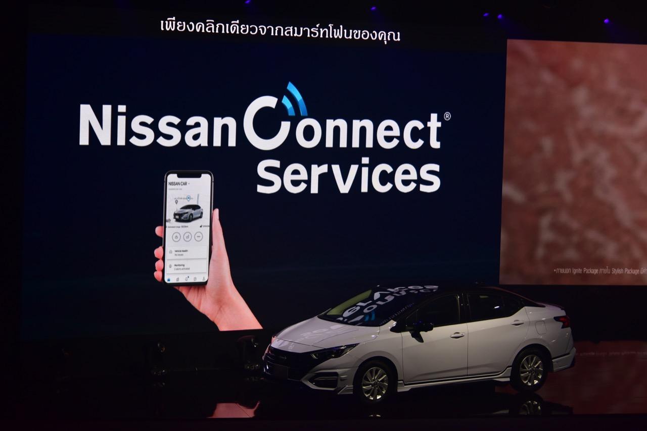 NissanConnect Services การเชื่อมต่อผ่านสมาร์ทโฟน แอปพลิเคชันที่ช่วยให้ผู้ขับ สามารถควบคุมหรือสั่งการรถได้จากระยะไกล ครั้งแรกของเซกเมนท์ที่ติดตั้งฟังก์ชัน SOS เพื่อขอความช่วยเหลือจากศูนย์ให้ความช่วยเหลือฉุกเฉินได้ทันที ผ่านระบบเครื่องเสียงภายในรถยนต์ เมื่อเกิดเหตุไม่คาดฝัน นอกจากนี้ NissanConnect Services ช่วยให้ผู้ขับสื่อสารและควบคุมรถได้ด้วยระบบสั่งการระยะไกลต่างๆ ได้แก่ ระบบตรวจสอบสถานะการล็อกประตู ระบบสตาร์ตเครื่องยนต์ระยะไกล ระบบสั่งกะพริบไฟหน้า และสั่งระบบแตรระยะไกล ช่วยให้ค้นหาตำแหน่งของรถในลานจอดรถที่มีรถแน่นขนัด My ด้วย Car Finder หรือระบบค้นหาตำแหน่งรถ ฟังก์ชันนี้จะช่วยค้นหา และนำทางไปยังตำแหน่งที่รถจอด นอกจากนี้ ยังช่วยแจ้งเตือนสถานะของรถได้ด้วย เช่น ตรวจสอบการล็อกของรถ หรือตรวจสอบความผิดปกติที่เกิดขึ้นกับรถ การแจ้งเตือนเมื่อถึงกำหนดการบำรุงรักษาตามระยะ การเตือนเมื่อใช้ความเร็วเกินกำหนด การให้ข้อมูลเกี่ยวกับระยะทางและระยะเวลาที่ใช้รถ แจ้งเตือนเมื่อสัญญาณกันขโมยทำงาน หรือเมื่อรถออกนอกพื้นที่ที่กำหนด แอปพลิเคชันนี้จะแจ้งไปยังเจ้าของรถทันที ทำให้สามารถจัดการได้ทันท่วงที และติดตามตำแหน่งของรถได้ตลอดเวลา