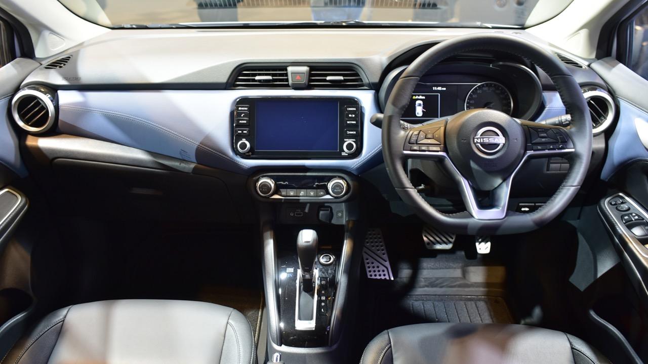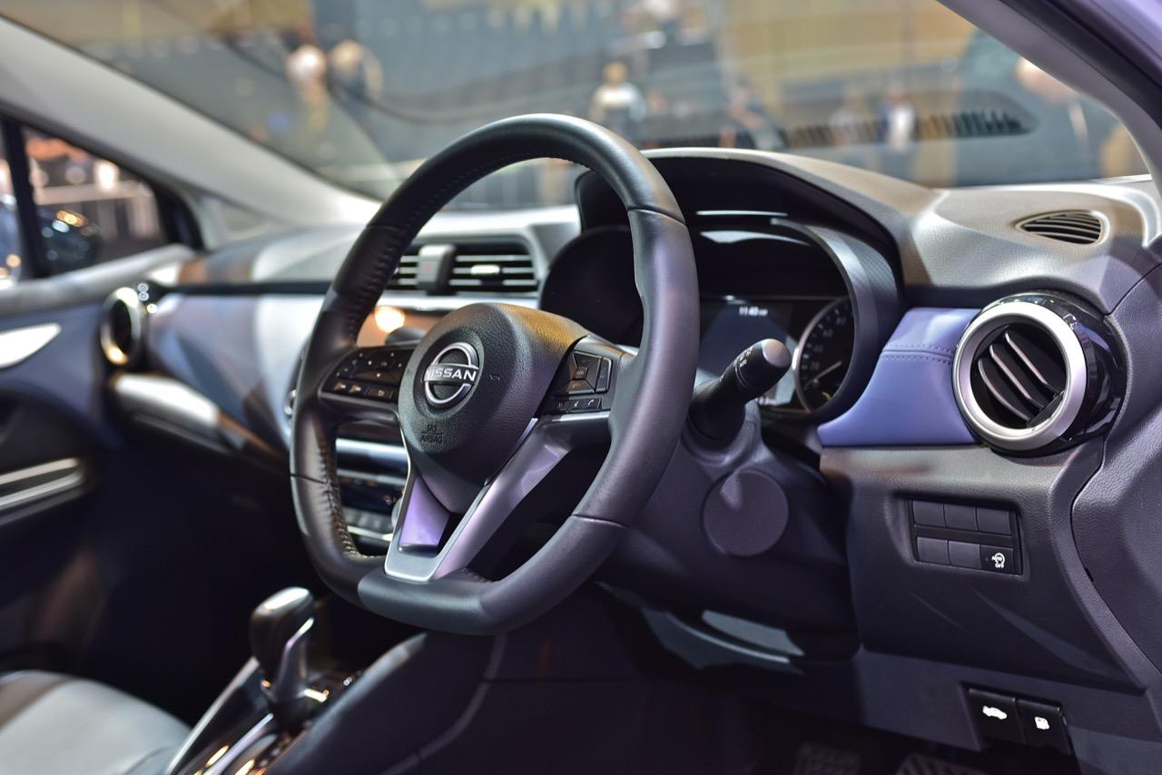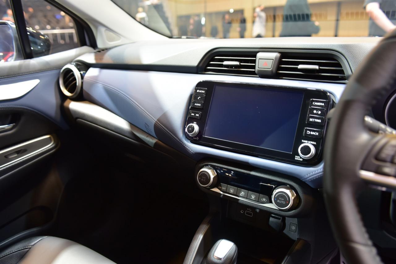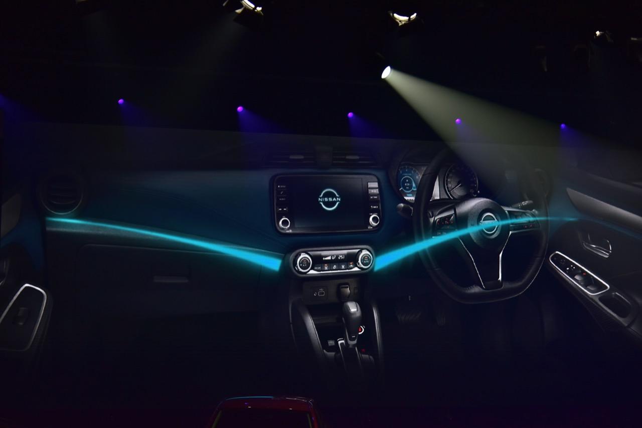 Almera รุ่นปรับโฉม เปลี่ยนไฟหน้าแบบใหม่ให้เข้ากับรูปลักษณ์ของกระจังหน้าใหม่ V-motion ด้วยพลาสติกสีดำเงา การปรับเปลี่ยนส่วนหน้าใหม่ ของรถรุ่นปรับโฉม ไม่ได้จำกัดเฉพาะกระจังหน้าเท่านั้น แต่เป็นการเปลี่ยนดีไซน์ด้านหน้าทั้งหมด ทุกรายละเอียด ตั้งแต่กระจังหน้า โลโก้ใหม่ กระโปรงหน้า ไปจนถึงเสา A-pillar ต่อเนื่องไปยังเส้นกรอบหลังคา ด้านข้าง และด้านหลัง มีการเพิ่มความทันสมัยกับการตกแต่งที่แผงคอนโซลหน้ารูปปีกที่สยายออก (gliding wing) และที่แผงประตูด้วยวัสดุสีน้ำเงินเข้ม