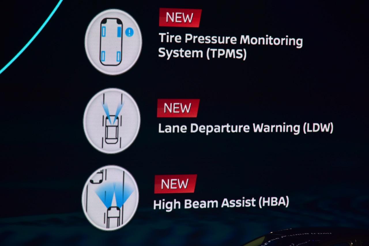 ระบบความปลอดภัยใหม่ที่แต่เดิมจะมีในรถรุ่นพรีเมียม ได้แก่ เทคโนโลยีเซนเซอร์ตรวจสอบแรงดันลมยาง (Tire Pressure Monitoring System – TPMS) ติดตั้งระบบตรวจสอบแรงดันลมยาง แจ้งเตือนแรงดันลมยางแต่ละเส้น เตือนเมื่อลมยางต่ำหรือสูงกว่ากำหนด ระบบเปิด-ปิดไฟสูงอัตโนมัติ (High Beam Assist – HBA) ปรับไฟหน้าจากไฟสูงเป็นไฟต่ำทันที เมื่อเซนเซอร์ตรวจจับได้ว่ามีรถสวนมา ระบบแจ้งเตือนเมื่อรถออกนอกช่องทาง (Lane Departure Warning – LDW) ส่งสัญญาณเตือนด้วยไฟกะพริบและการสั่นที่พวงมาลัย เมื่อรถออกนอกช่องทางเดินรถโดยไม่ได้ตั้งใจ