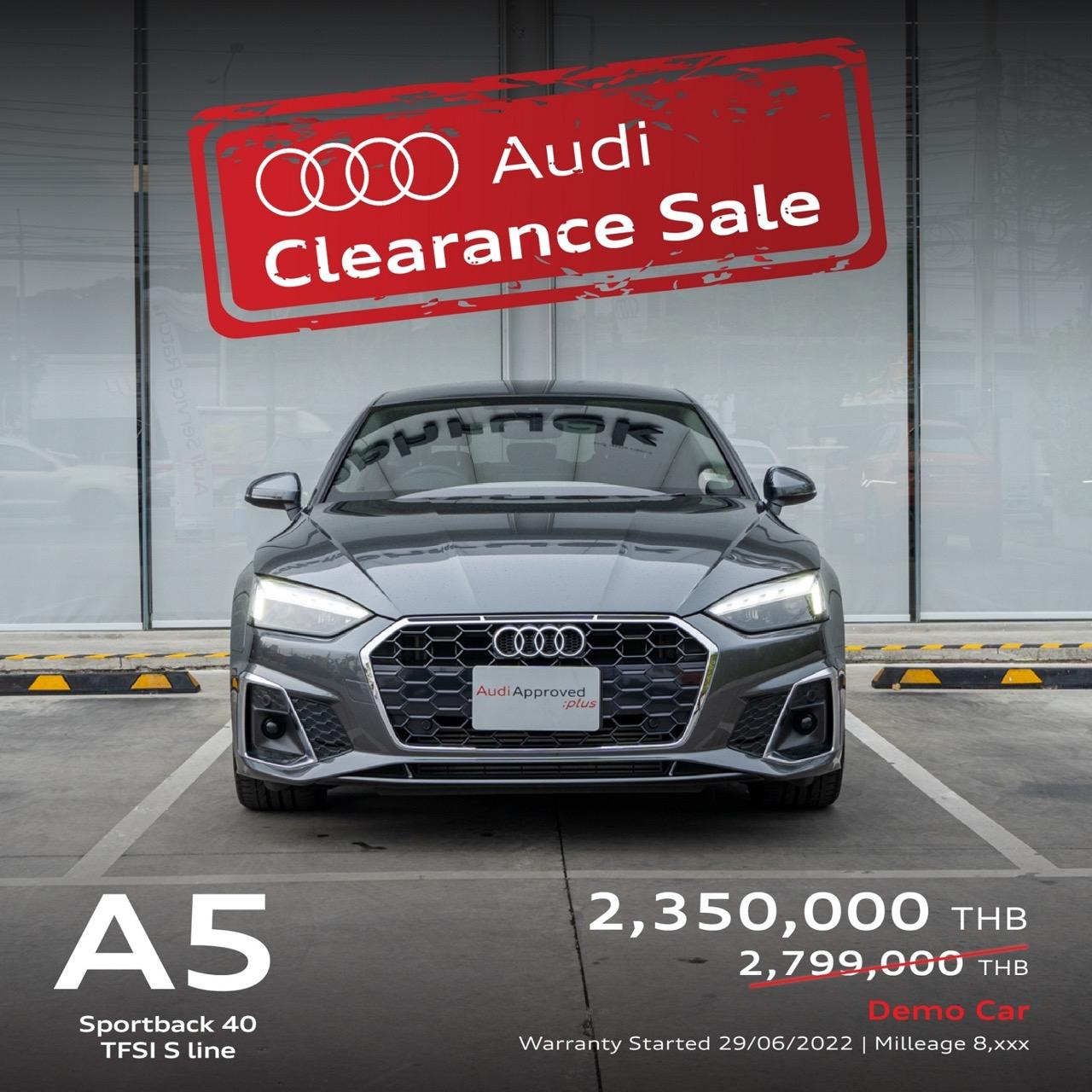 · Audi A5 Sportback 40 TFSI รถผู้บริหาร ไมล์น้อย เพียง 8,xxx กิโลเมตร ราคา 2.35 ล้านบาท
