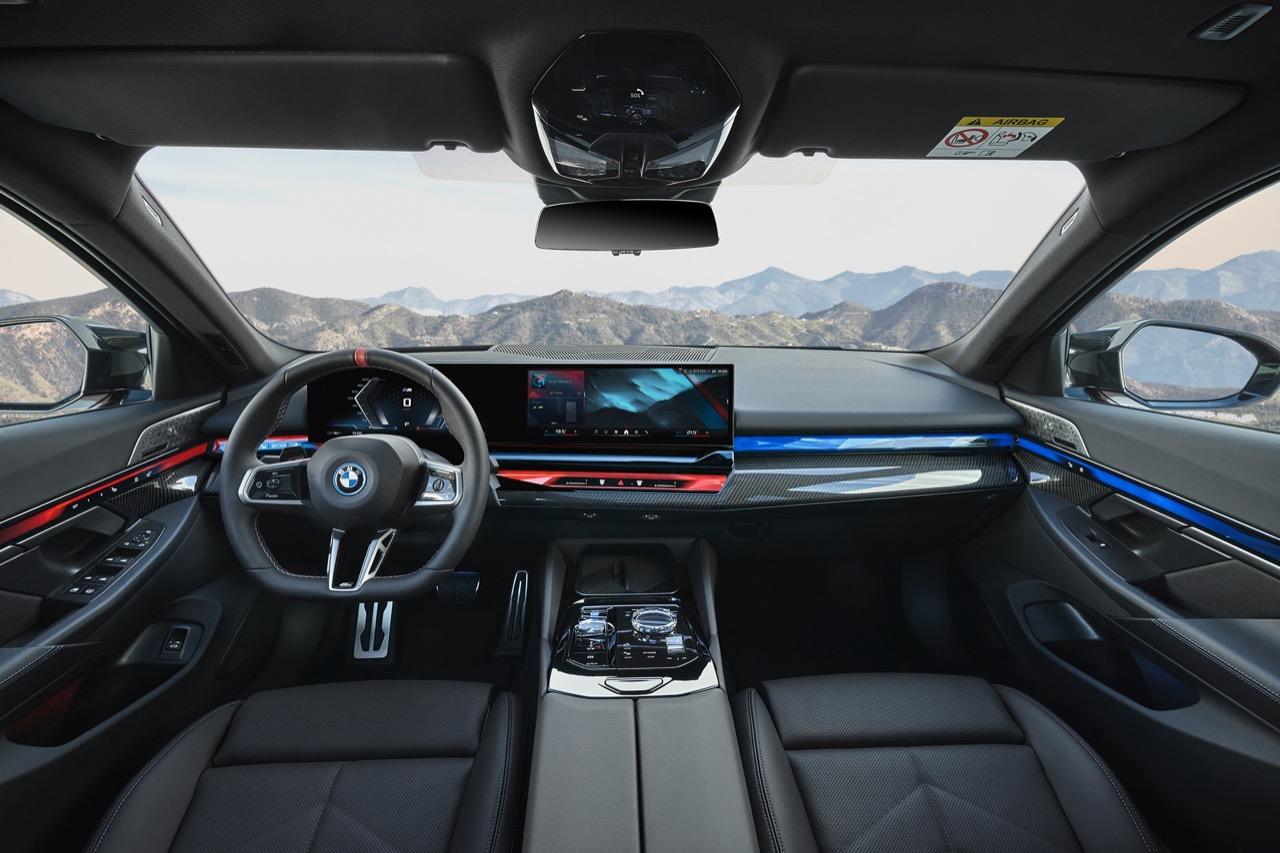 BMW ใส่จอแสดงผลแบบโค้งขนาดใหญ่และ BMW รุ่นใหม่ทุกรุ่นก็มีจอภาพระบบปฏิบัติการณ์ OS 8.5 ใช่ครับ New Series-5 จะมาพร้อมระบบปฏิบัติการแบบใหม่ 8.5 ของ BMW พื้นผิวเบาะนั่งสุดพิเศษด้วยหนัง Veganza/Alcantara ที่มีการเจาะด้วยสไตล์ที่ไม่เหมือนใครในบริเวณไหล่ และเน้นความโปร่งแสงด้วยสีแดงและสีน้ำเงิน แป้นเหยียบ M ที่พักเท้าคนขับ M และจอแสดงผล M-spec บนจอแสดงข้อมูล ช่วยเพิ่มบรรยากาศแบบสปอร์ตสำหรับลูกค้าเก่าที่ยังแอบอิงกับความงดงามในอดีตของ Series-5