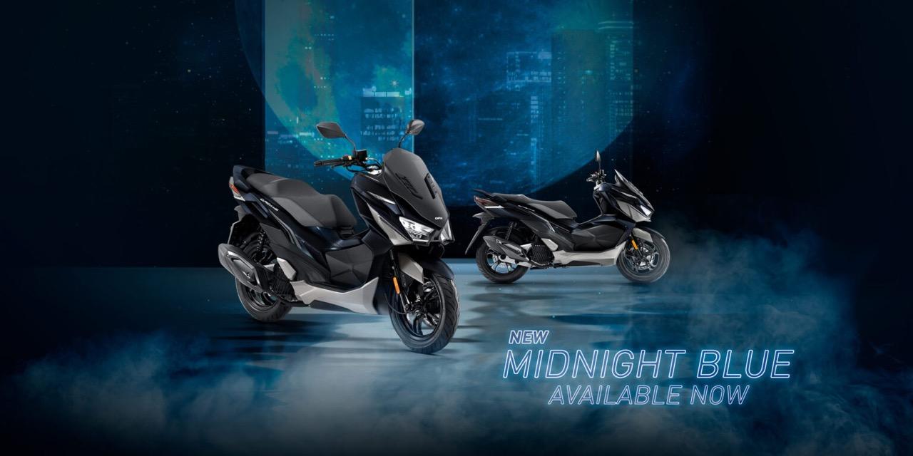 New GPX DRONE 4 Valves (2023) สกู๊ตเตอร์สปอร์ต สีใหม่ Midnight Blue (มิดไนต์ บลู) สีพิเศษบนเนื้อผิวแบบ MATT มีประกายมุก สีทูโทน กับสีสันโทนน้ำเงินเข้มของท้องฟ้ายามรัตติกาล เพิ่มเติมลูกเล่น ตัดด้วยสี Silver บนตัวรถ คอนเซปต์ FREEDOM TO DESIGN