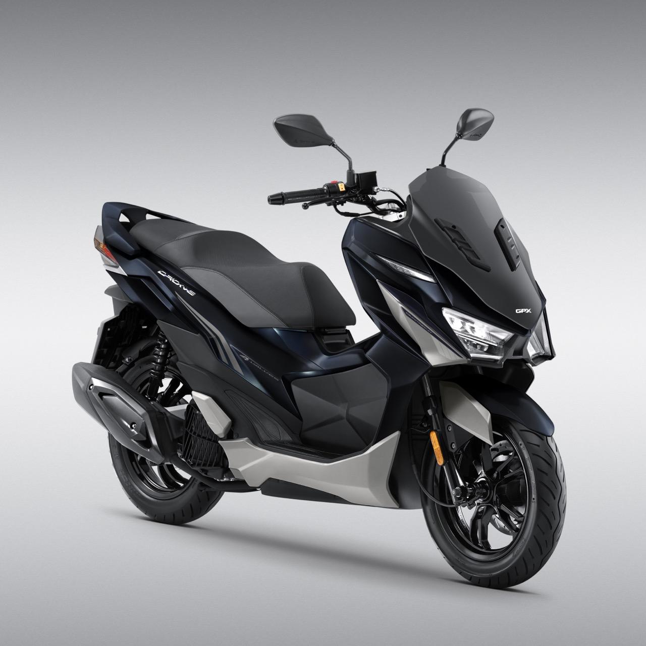 GPX DRONE 4 Valves รถสกู๊ตเตอร์สปอร์ต เดิมทีโฉมใหม่มีถึง 4 สีด้วยกัน กับดีไซน์โดนใจสายสปอร์ตกันอยู่แล้ว ชนิดที่ว่าไปที่ไหนก็มักจะเห็นรถรุ่นนี้บนท้องถนน ด้วยรูปทรงอันโดดเด่น ปราดเปรียว ดุดัน เร้าใจบนงานดีไซน์เฉียบคม จนทำให้ GPX DRONE 150 กลายมาเป็นโมเดลเรือธงของค่าย GPX กันเลยทีเดียว ครั้งนี้กลับมาเซอร์ไพรส์กันอีกครั้ง ในสีสันใหม่แบบทูโทนสุดสปอร์ต กับสีพิเศษ Midnight Blue