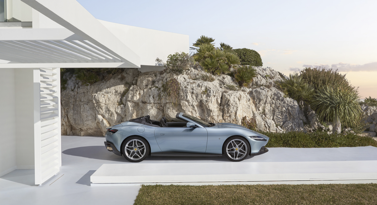 Ferrari Roma Spider รถสปอร์ตเปิดประทุนรุ่นล่าสุดของแบรนด์ม้าลำพองแห่งมาราเนลโล ความพิเศษของ Roma Spider นอกจากจะเป็นรถเปิดหลังคาแล้ว Roma Spider ยังมีสัดส่วนและสเปคเดียวกับ รถสปอร์ตเครื่องยนต์ V8 วางหน้า ขับเคลื่อนล้อหลัง 2+2 ที่นั่ง เป็นดีเอ็นเอภาคต่อขยายของ Ferrari Roma ที่ประสบความสำเร็จอย่างมากก่อนหน้านี้ หลังคา Soft Top ดีไซน์แปลกใหม่และมีความล้ำสมัย ตอกย้ำบุคลิกของรถเปิดหลังคา ออปชั่นปรับแต่งเพื่อความเป็นเอกลักษณ์เฉพาะตัว ผ้าหลังคาแบบสั่งตัด เย็บตะเข็บด้วยด้ายสีตัดกัน เบาะหลังแบบพับเก็บได้ สำหรับเก็บสัมภาระที่มีขนาดใหญ่ การเชื่อมต่อแบบไร้สายผ่าน Wi-Fi รองรับ Android Auto® และ Apple CarPlay® เบาะนั่งที่ออกแบบตามหลักสรีรศาสตร์ ปรับไฟฟ้า 18 ทิศทาง