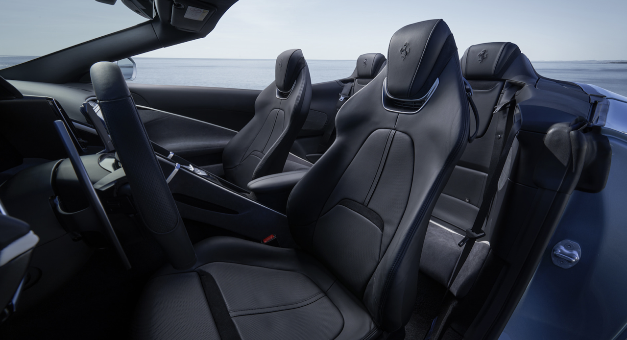 ตัวเลขความแข็งแกร่งของความต้านทานการบิดตัว สำหรับตัวถังและแชสซี มีน้ำหนักเพิ่มขึ้น 84 กิโลกรัม สำหรับอัตราส่วนน้ำหนักต่อแรงม้าที่ 2.5 กิโลกรัมต่อ 1 แรงม้า อยู่บนสุดพลังในกลุ่มรถสปอร์ตเปิดหลังคาสมรรถนะสูง การควบคุมและสมรรถนะเหมือนกับ Ferrari Roma รุ่นหลังคาแข็ง การเพิ่มอุปกรณ์เบี่ยงเบนกระแสลมในตัว ช่วยเพิ่มความสะดวกสบายของผู้โดยสาร เพิ่มพนักพิงศีรษะสำหรับเบาะหลัง รวมเข้ากับการออกแบบฝากระโปรงท้าย