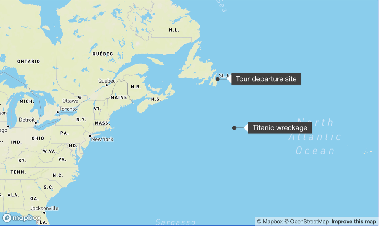 OceanGate Expeditions เรียกเก็บเงินลูกค้า 250,000 ดอลลาร์ (195,270 ปอนด์) คิดเป็นเงินไทยประมาณ 8,772,500 บาท สำหรับการเดินทางนานแปดวัน เพื่อดำลงไปชมซากเรือไททานิกอย่างใกล้ชิด สำหรับซากเรือที่กลายเป็นตำนานลำนี้ อยู่ห่างจากชายฝั่งนิวฟันด์แลนด์ของแคนาดาประมาณ 600 กิโลเมตร (370 ไมล์) ซากเรือจมลงและหักออกเป็นสองส่วน โดยมีหัวเรือและท้ายเรือแยกจากกันประมาณ 800 เมตร (2,600 ฟุต) ทุ่งเศษซากขนาดใหญ่ของไททานิกล้อมรอบซากเรือที่แตกออกเป็นสองส่วนใหญ่ๆ