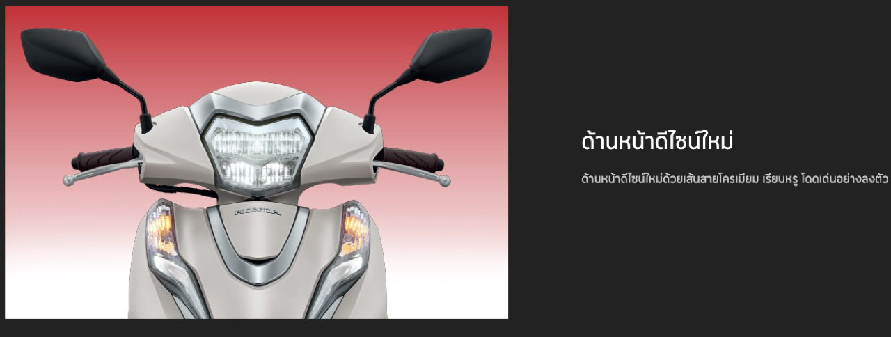Honda LEAD125 สีดำใหม่ ดีไซน์ด้านหน้าด้วยเส้นสายโครเมียม สมรรถนะการขับขี่ LEAD125 เครื่องยนต์ eSP+ 4 วาล์ว 125 ซีซี อัตราประหยัดน้ำมัน 52.6 กม./ลิตร จากการทดสอบภายใต้มาตรฐานไอเสียระดับ 7 รับรองโดยสถาบันยานยนต์ พร้อมระบบหยุดเครื่องยนต์อัตโนมัติ Idling Stop System ดิสก์เบรกหน้า พร้อมระบบ Combi Brake กระจายแรงเบรกหน้า-หลัง