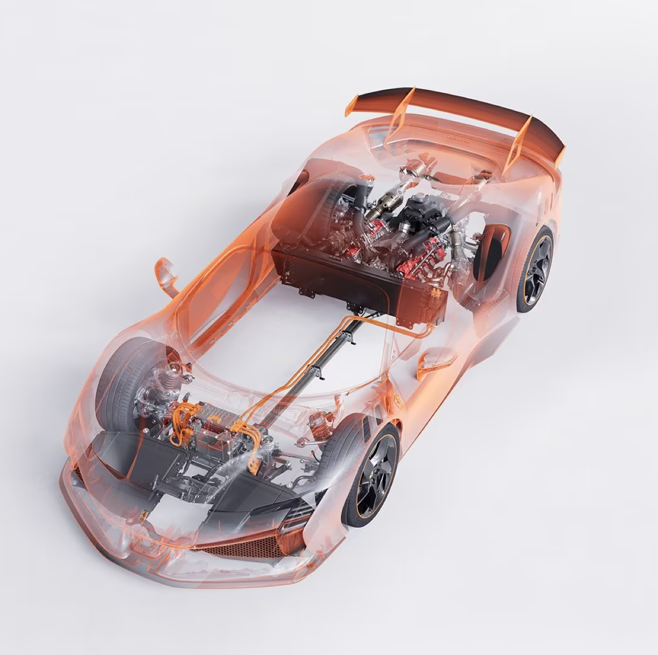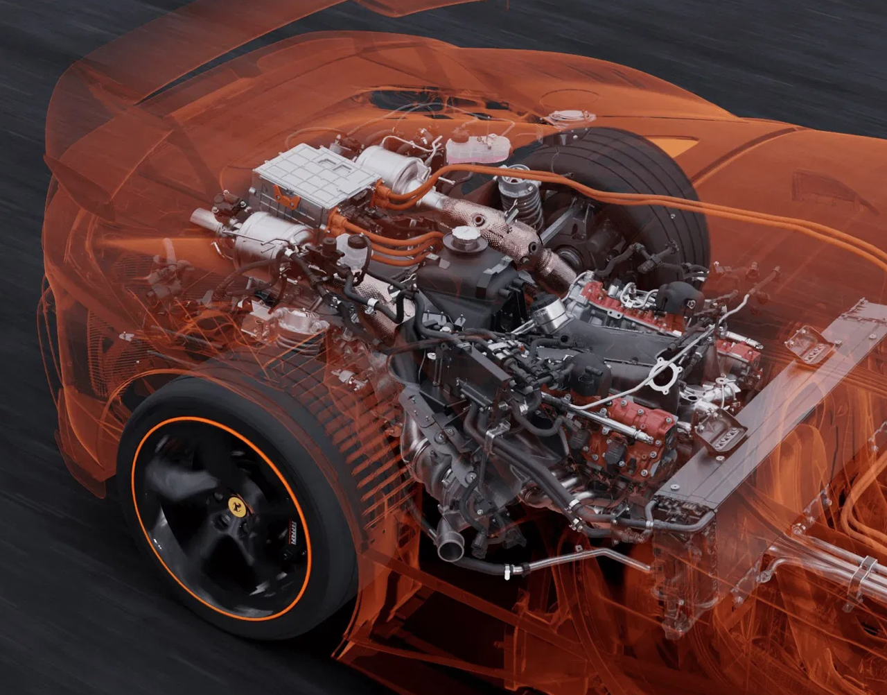 เครื่องยนต์ V8 เทอร์โบ วางกลางลำ ยกระดับขีดจำกัดสูงสุดด้านสมรรถนะ ให้เพิ่มเป็น 797 แรงม้า เครื่องยนต์รหัส F154FB จาก SF90 Stradale เป็นจุดเริ่มต้นให้กับการขับเคลื่อน SF90 XX Stradale เพิ่มความสุดขั้ว ด้วยประสิทธิภาพของการออกแบบช่องไอดีและไอเสีย กำลังอัดในกระบอกสูบสูงขึ้นจากการใช้ลูกสูบแบบใหม่ ห้องเผาไหม้ที่กลึงพิเศษ ตัดระบบอากาศชุดที่สองออกไป ช่วยลดน้ำหนักของเครื่องยนต์ 3.5 กก. เมื่อเทียบกับเครื่องยนต์เดิมของ SF90 Stradale ซาวด์แทร็กประกอบการทำความเร็วของ SF90 XX Stradale ปรับจูนท่อใหม่ เพื่อให้ได้มาซึ่งที่สุดของจิตวิญญาณรถแข่ง ระบบท่อไอเสียพัฒนาใหม่ ส่งเสียงคำรามหนักแน่นตลอดย่านความเร็วรอบของเครื่อง V8 เสียงเครื่องยนต์จะดังกระหึ่มทั่วห้องโดยสาร ด้วยคลื่นความถี่ที่สูงขึ้น นวัตกรรมใหม่ช่วยเพิ่มความคมชัดของระบบเสียง ท่อที่ต่อออกมาจากท่อร่วมไอดี ออกแบบใหม่โดยเปลี่ยนมาจัดวางในตำแหน่งที่ใกล้กับผนังห้องโดยสาร เพื่อให้ผู้โดยสารรับฟังเสียงที่เฉียบคมและดังสนั่น จากการที่เครื่องยนต์ต้องดูดอากาศในปริมาณมากกว่าเดิม เพื่อถ่ายทอดแรงบิดตามเป้าหมายที่ตั้งไว้ หม้อพักไอเสียจัดวางไว้ใกล้กับเครื่องยนต์เพื่อเสียงที่ทรงพลังและเด่นชัด ปลายท่อทั้งสองของระบบไอเสีย เน้นโทนเสียงรอบกลาง เมื่อรอบเครื่องสูงขึ้นจนเข้าใกล้ขีดจำกัดสูงสุด เป็นช่วงที่รถปลดปล่อยกำลังสูงสุด ระบบไอเสียที่ถูกปรับแต่งใหม่ ให้ทั้งคลื่นเสียงที่คมชัด เพื่อเพิ่มความลื่นไหลและราบรื่นของเสียง