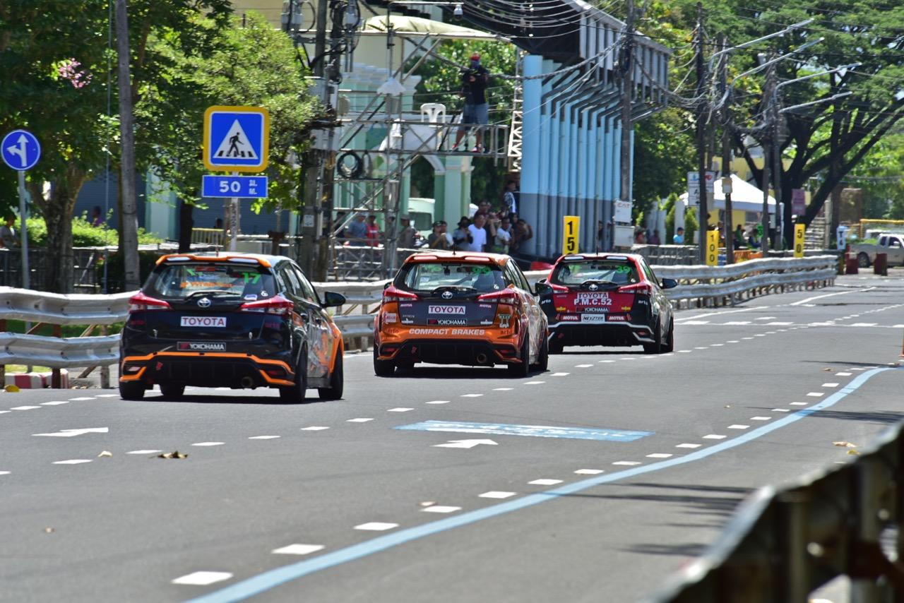 เริ่มต้นการแข่งขัน Yaris One Make Race (D1) หลังจากพิธีเปิดการแข่งขันอย่างเป็นทางการของผู้บริหาร Toyota Motor Thailand และผู้ว่าราชการจังหวัดภูเก็ต เป็นรายการแรกที่ซิ่งรถ Toyota Yaris ในช่วงบ่ายวันเสาร์ ในสนามสะพานหินความยาว 1.3 กิโลเมตร ออกสตาร์ตจากจุดปล่อยตัว รถ Yaris หมายเลข 39 ขับโดย นิพิฐพนธ์ วัฒนานิตย์ แทรกกลุ่มขึ้นมานำเป็นอันดับที่หนึ่ง ตามด้วยรถ Yaris หมายเลข 99 ของ ภูริพรรธน์ เวชวงศาเตชาวัชร์ ตามมาห่างๆ และที่ไล่เกาะท้ายภูริพรรธน์ตั้งแต่รอบแรกไปจนจบการแข่งขันก็คือรถ Yaris หมายเลข 17 ของ ไพชยนต์ ทองเจือ