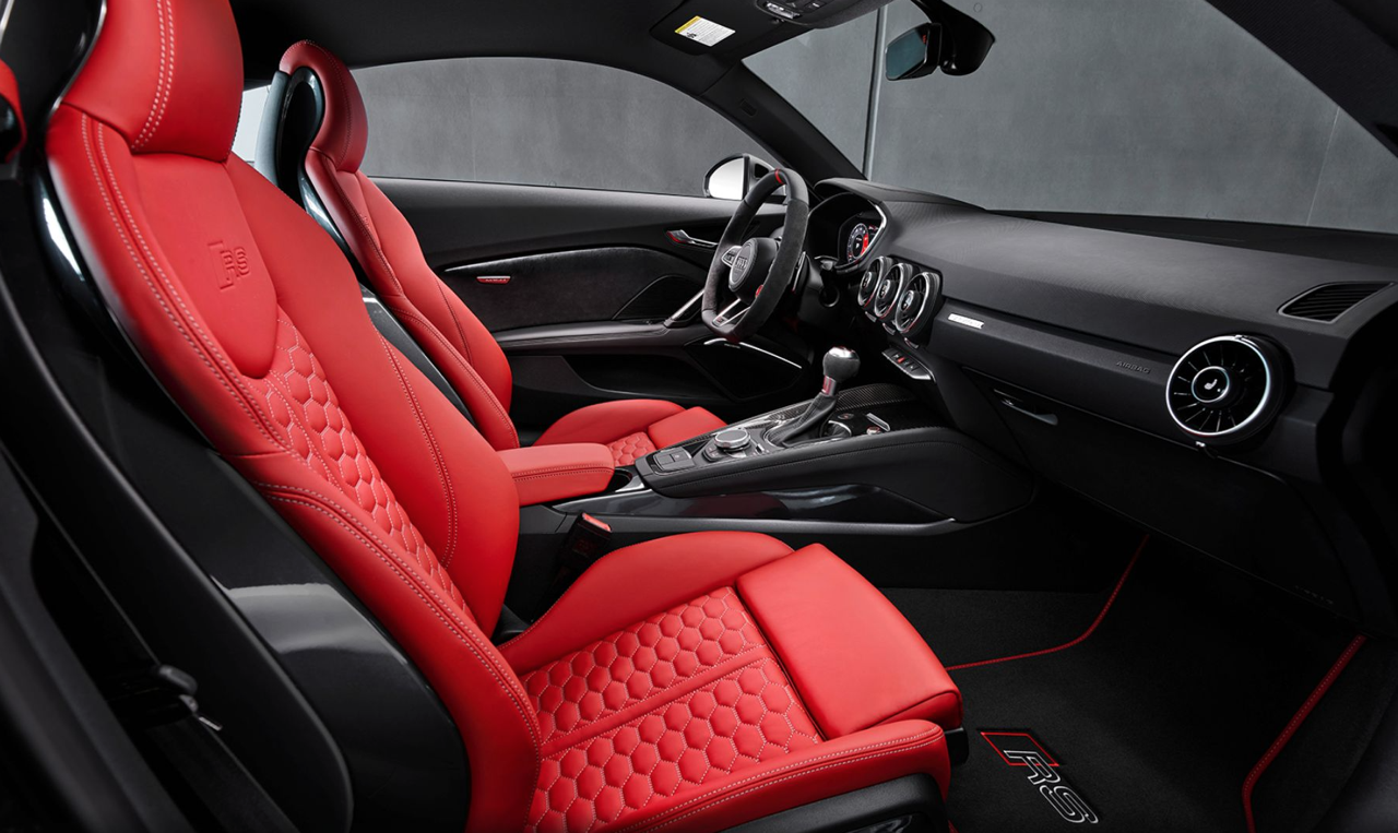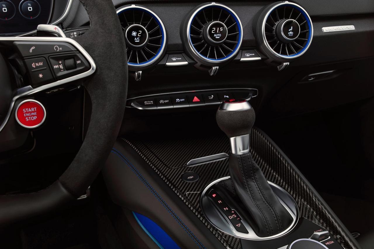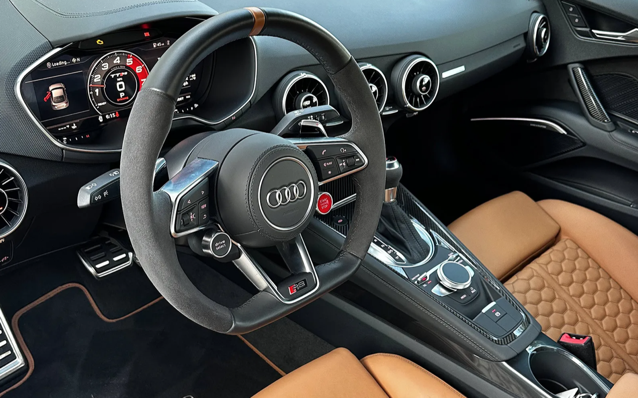 TT RS Coupé RS Heritage Edition ติดตั้งระบบ MMI Touch เวอร์ชันใหม่ ออกแบบให้ใช้งานง่าย จอแสดงผลข้อมูลการขับขี่คมชัด ระบบเครื่องเสียงพรีเมียมจาก Bang & Olufsen ปุ่มสตาร์ตเครื่องยนต์ บนพวงมาลัย ออกแบบคล้ายกับปุ่มสตาร์ตของรถสปอร์ตสมรรถนะสูงอย่าง Audi R8 พวงมาลัยของ TT RS แบบสามก้าน ใช้หนังสองรูปแบบ มีทั้งหนังแบบปกติและหนังกลับ Alcantara บริเวณร่องกริ้บออกแบบให้จับได้อย่างกระชับมือ สวิตช์มัลติฟังก์ชันด้านขวา มีปุ่มรับโทรศัพท์ ปุ่มสั่งงานด้วยเสียง ปุ่มควบคุมความดังของลำโพง ใต้ก้านวงด้านขวาเป็นปุ่มสตาร์ตเครื่องยนต์สีแดงคล้ายปุ่มยิงขีปนาวุธ ก้านวงพวงมาลัยด้านซ้ายเป็นที่อยู่ของปุ่มปรับการแสดงผลของจอภาพมาตรวัดและจอภาพมอนิเตอร์ที่อยู่ในจอเดียวกัน ใต้ก้านวงพวงมาลัยด้านซ้ายเป็นสวิตช์ปรับโหมดขับเคลื่อนสีดำ แป้นเปลี่ยนเกียร์ Paddle Shift ที่วางอยู่ในตำแหน่งพอเหมาะ