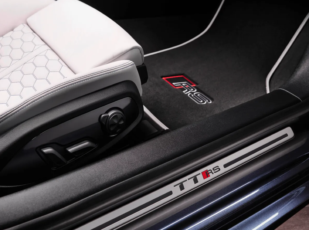 TT RS Heritage Edition มีการอัปเกรดนอกเหนือไปจากสีพิเศษ ล้อขนาด 20 นิ้ว ลายห้าก้าน สีแอนทราไซต์ ฝาครอบพื้นผิวอะลูมิเนียม แพ็กเกจนี้มีการถอดวิงหลังออก มีท่อไอเสียแบบสปอร์ตพร้อมปลายวงรีสีดำ งานตกแต่งภายในที่งดงามด้วยสีสันที่แปลกตาแต่สดใส พวงมาลัยและคันเกียร์หุ้มหนัง Alcantara โลโก้ RS อยู่บนพรมปูพื้น เบาะแบบสปอร์ต จอภาพพร้อม MMI มัลติมีเดียไร้สายเชื่อมต่อกับโทรศัพท์มือถือ งานภายในแตกต่างไปจาก TT 45 TFSI เบาะนั่งของ TT RS เป็นแบบสปอร์ตหุ้มด้วยหนัง Fine Nappa ตกแต่งแบบ Honeycomb เย็บเดินตะเข็บด้วยด้ายสีตัดกันอย่างฉูดฉาด พร้อมสัญลักษณ์ RS ที่พนักพิง ช่องแอร์ของระบบปรับอากาศพร้อมจอแสดงผลการควบคุมในรูปแบบดิจิทัล Audi Virtual Cockpit พวงมาลัยดีไซน์สปอร์ต พร้อมปุ่มเลือกโหมดการขับขี่ Audi Drive Select