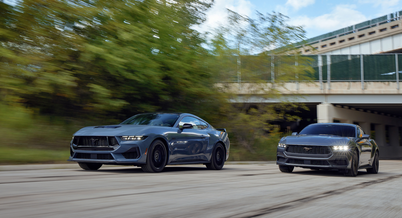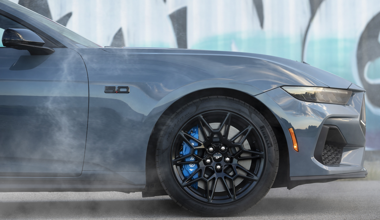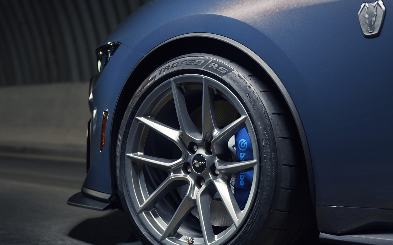Mustang 2024 ในยุโรปมีรุ่น Performance Pack จัดเหล็กค้ำยัน, โช้คอัพแม่เหล็ก, สปริงแบบใหม่ที่สั่งทำพิเศษ, เฟืองท้าย Torsen, เบรก Brembo ล้อและยางที่ใหญ่กว่าเดิม Dark Horse ได้รับระบบกันสะเทือนที่ปรับแต่งมาเฉพาะ ด้วยการตั้งโปรแกรมค่าการทำงานของโช้คอัพไฟฟ้าที่แตกต่างจากรุ่นอื่น เหล็กกันโคลงด้านหน้าที่หนาขึ้น หม้อน้ำระบายความร้อนเพิ่มเติม สำหรับเครื่องยนต์และเฟืองท้าย พร้อมพัดลมระบายความร้อนที่ทนทานมากยิ่งขึ้น