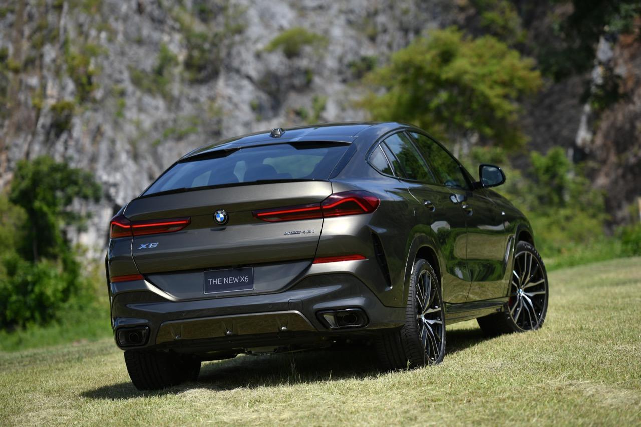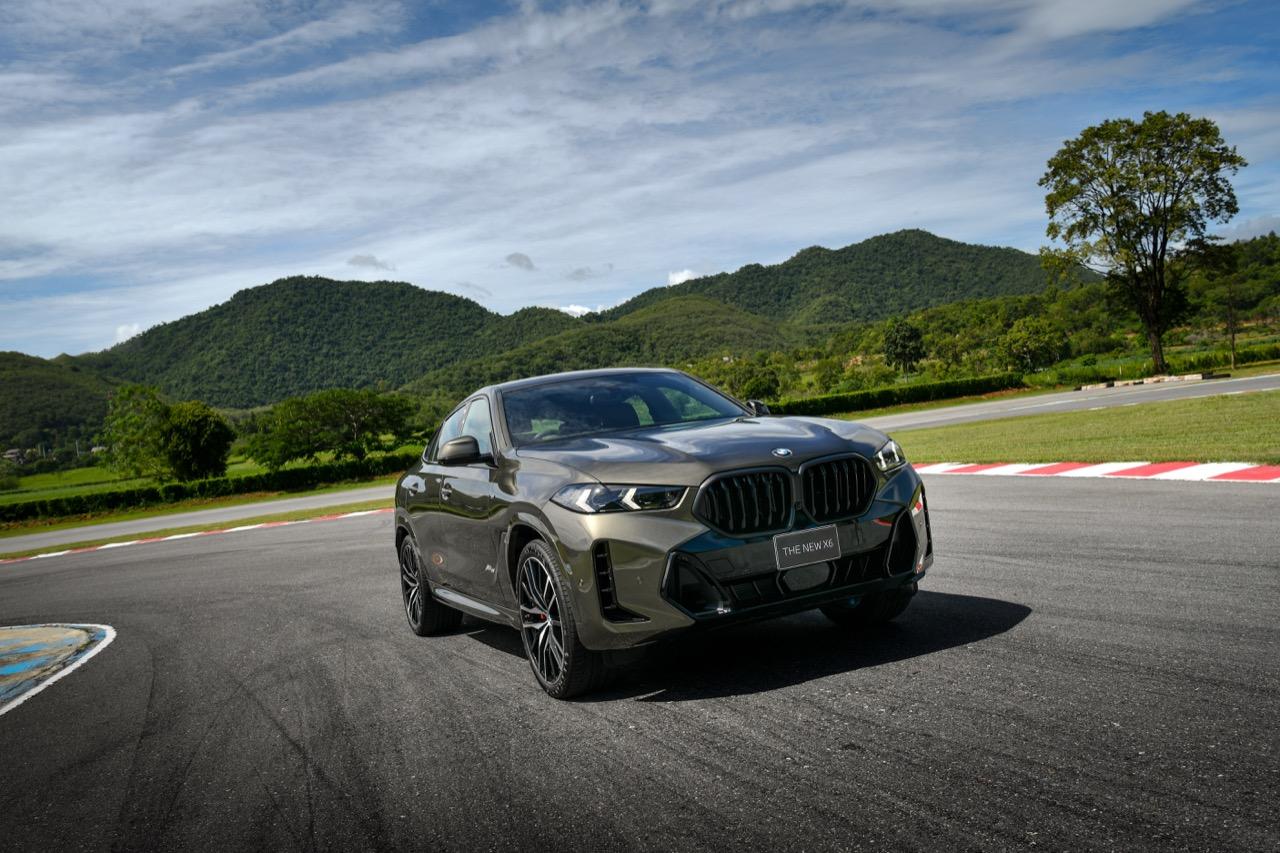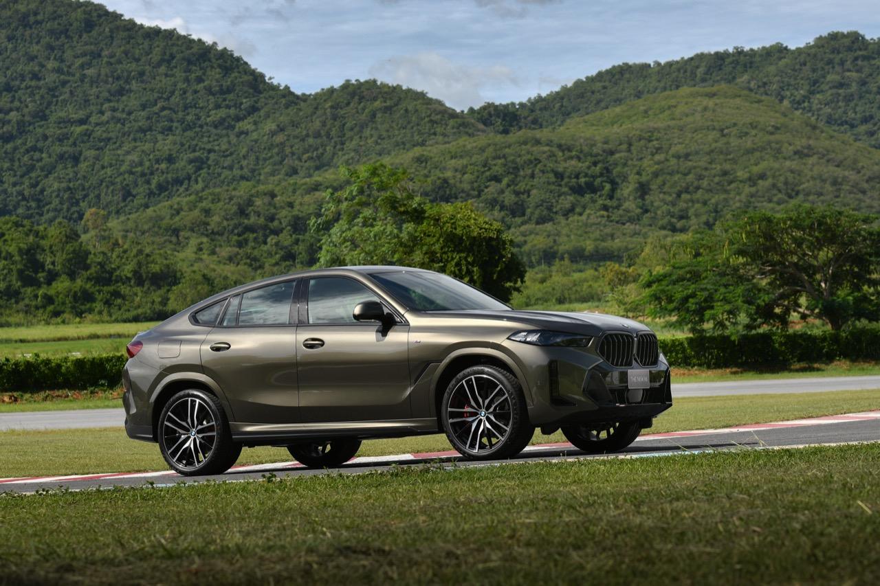 BMW Thailand เปิดตัว X6 xDrive40i M Sport LCI 2023 ดีไซน์ดุดันทรงอำนาจ ความยาวตัวรถ 4,960 มิลลิเมตร ความกว้าง 2,004 มิลลิเมตร ความสูงที่ 1,700 มิลลิเมตร ผสมผสานสัดส่วนที่ยืดออกอย่างปราดเปรียวเข้ากับภาพลักษณ์บึกบึนทรงพลังยิ่งขึ้น ชุดไฟหน้าพร้อมองค์ประกอบไฟส่องสว่างเวลากลางวันทรงลูกศรแบบใหม่ ระบบไฟหน้า Adaptive LED ระบบปรับการทำงานไฟสูงอัตโนมัติ (High-beam Assistant) กระจังหน้า BMW kidney 'Iconic Glow' ชุดแต่ง M สีดำเงา ชุดตกแต่งด้วยวัสดุสีดำเงา คมไฟหน้าตกแต่งดีไซน์ M สีดำ