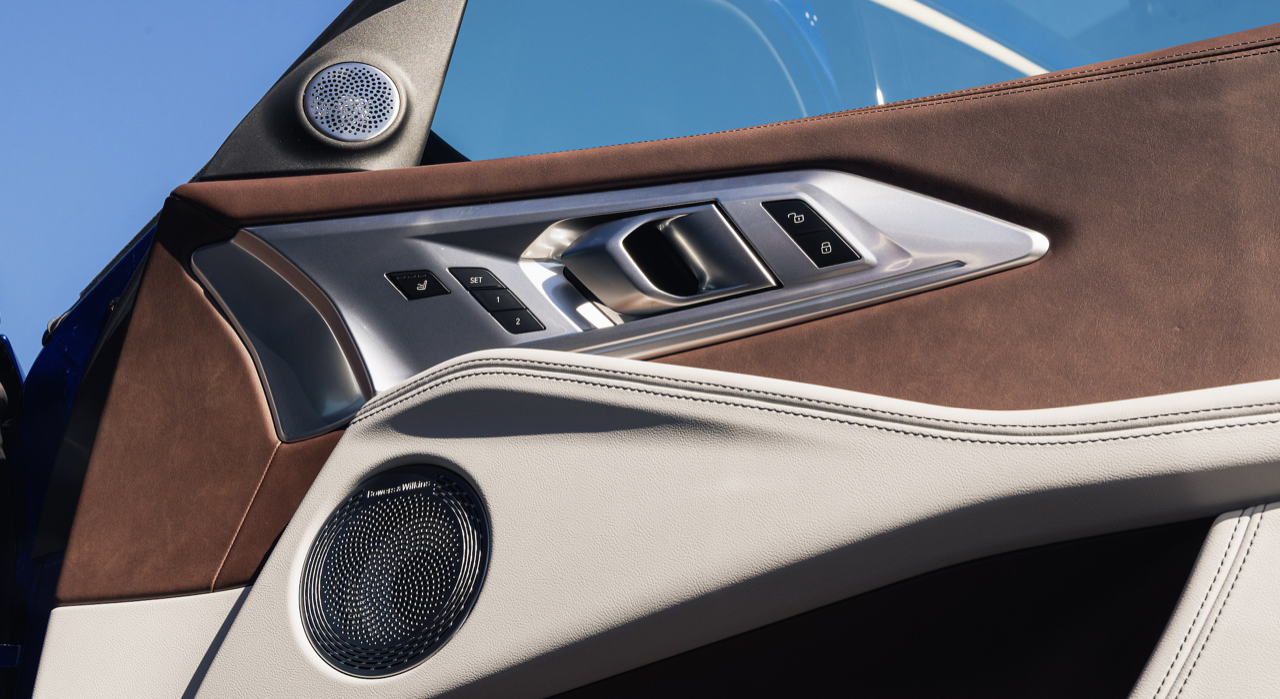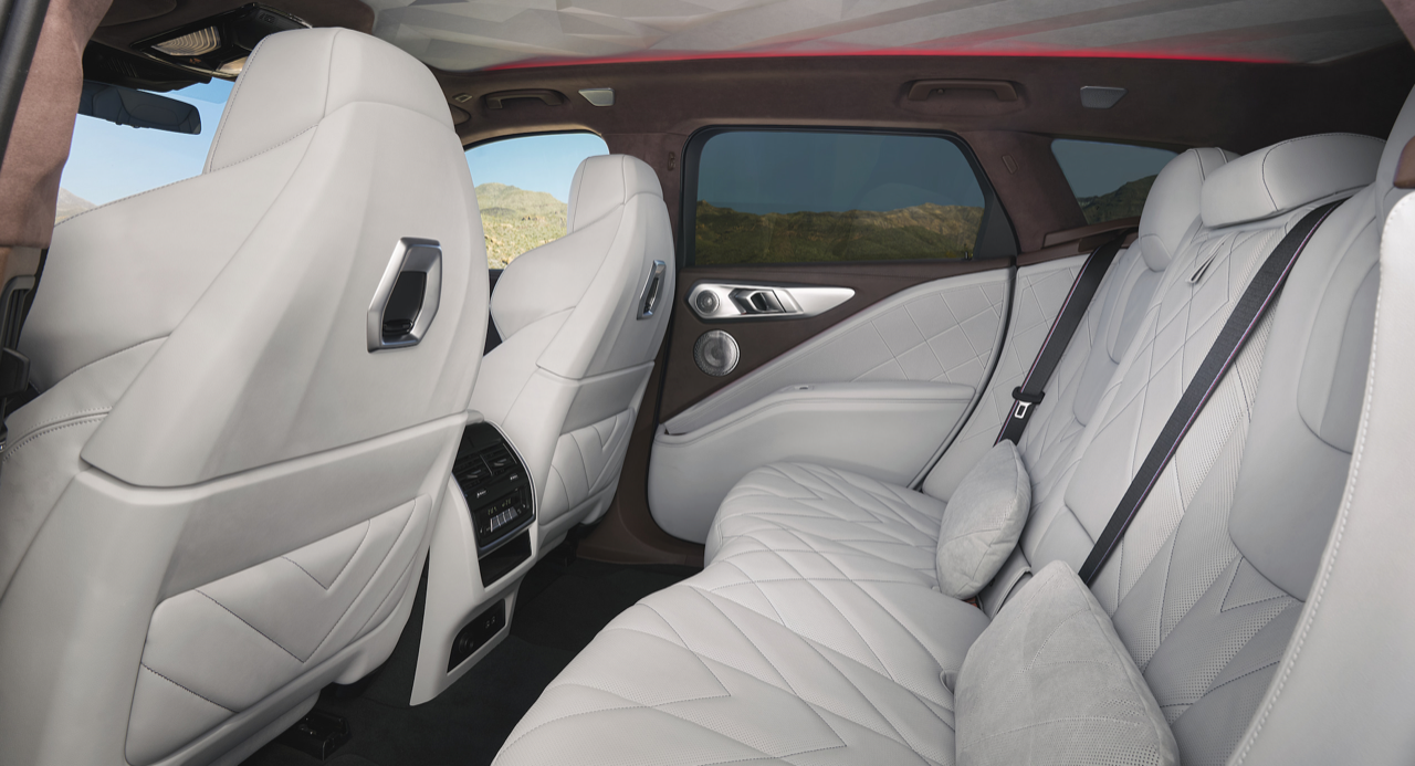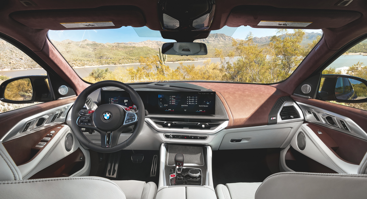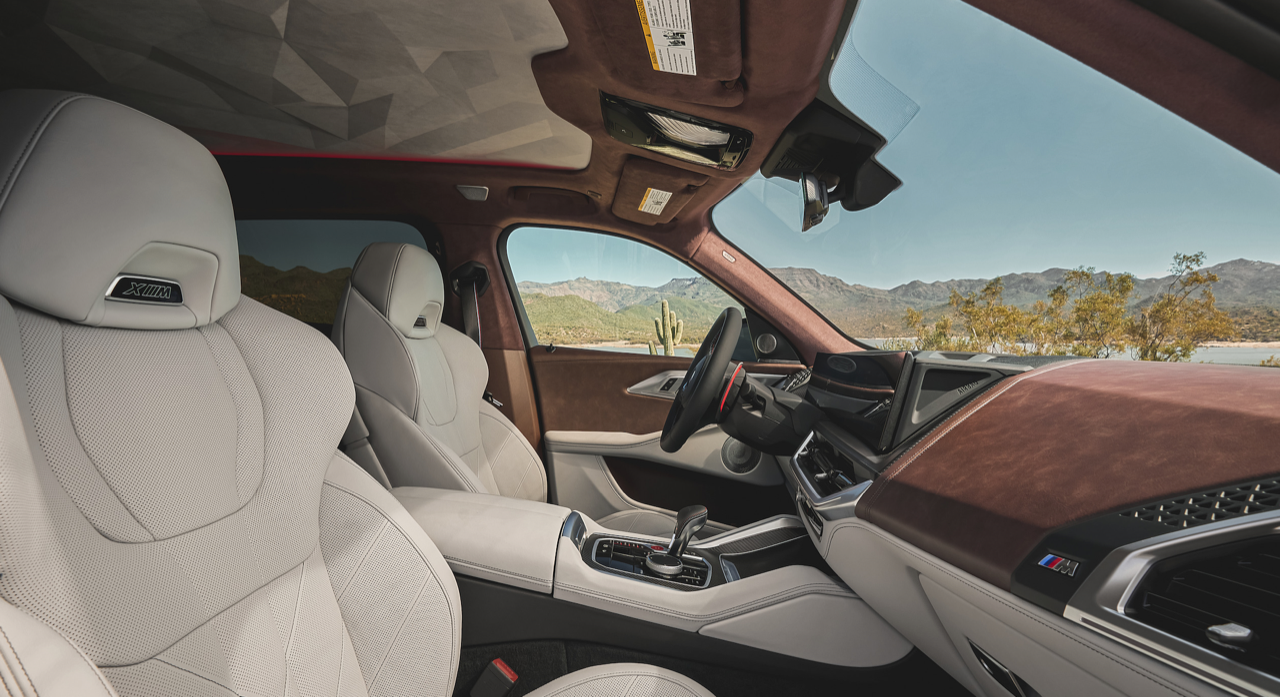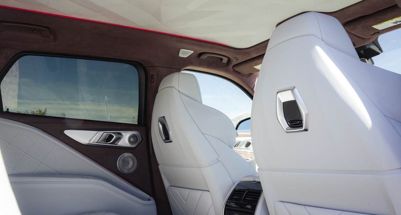 ภายในของ XM 50e แตกต่างด้วยดีไซน์ ห้องโดยสารตกแต่งดีไซน์ M ด้วยวัสดุคาร์บอนไฟเบอร์ พวงมาลัยหุ้มหนัง M เข็มขัดนิรภัย M ผ้าบุหลังคาประติมากรรม 3 มิติ ลวดลายแบบปริซึม เมื่อเปิดหลังคาพบกับหลอดไฟ LED กว่า 100 ดวงบนหลังคา ส่องสว่างอย่างงดงามยามค่ำคืน คอนโซลด้านบนบุด้วยหนังแบบ BMW Individual ชุดไฟตกแต่งภายใน ระบบปรับอากาศอัตโนมัติ 4 โซน ระบบระบายอากาศและฟังก์ชันนวดผ่อนคลาย สําหรับเบาะนั่งตอนหน้า ติดตั้งมาเป็นมาตรฐาน