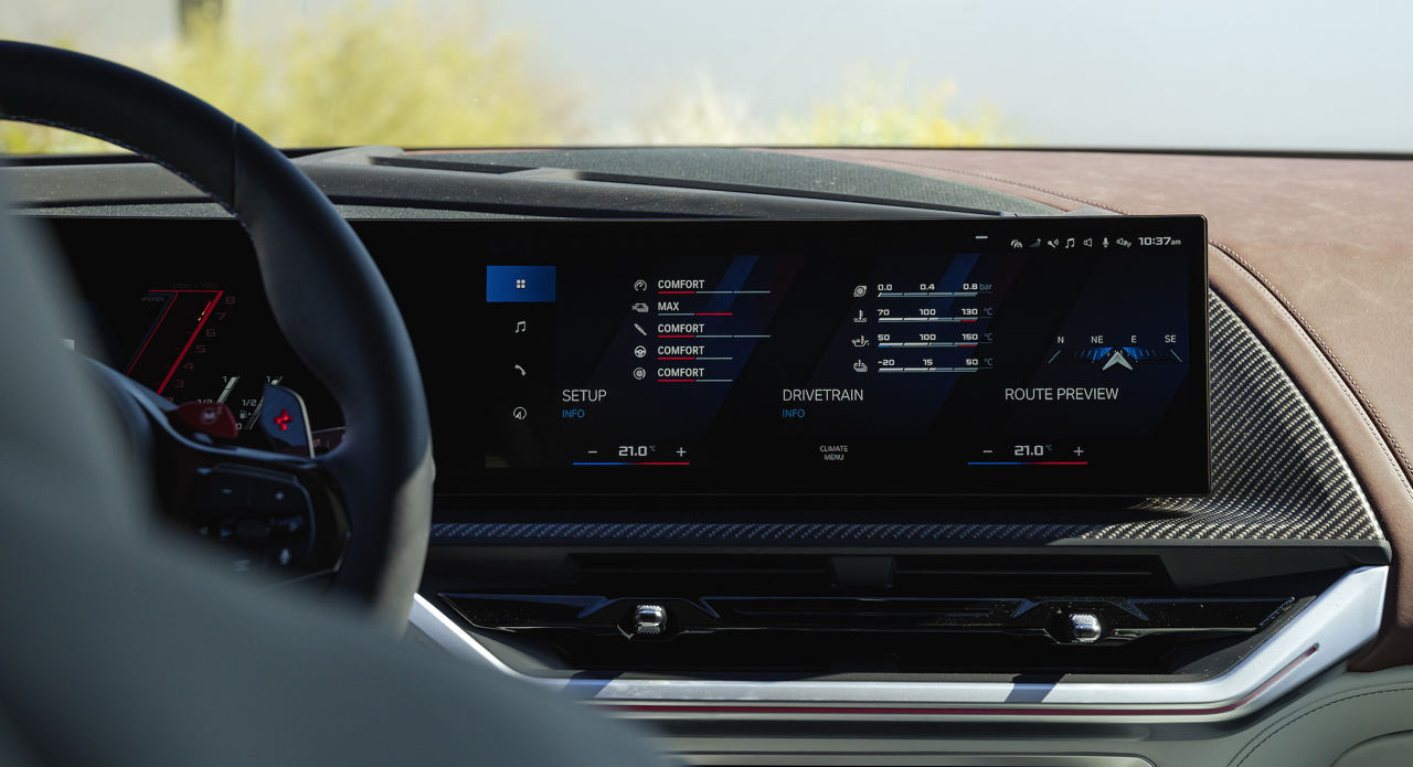 XM 50e พัฒนาระบบความบันเทิงและการสื่อสารให้ล้ำสมัย หน้าจอ BMW Head-up Display และระบบ BMW Live Cockpit Professional แสดงผลบนจอ Control Display ขนาด 12.3 นิ้ว ทำงานบนระบบปฏิบัติการ BMW Operating System ปรับแต่งให้ตรงตามความต้องการของผู้ใช้ได้มากยิ่งขึ้น ระบบจำลองเสียงเครื่องยนต์ Iconic Sounds Electric ให้เสียงขับที่กระตุ้นความตื่นเต้นแม้ในโหมดการขับขี่แบบไร้มลพิษ ระบบเชื่อมต่อสมาร์ทโฟนแบบไร้สายผ่าน Apple CarPlay หรือ Android Auto ระบบ Connected Package Professional ข้อมูลที่ครบถ้วนและข้อมูลการจราจรอัปเดตล่าสุดเมื่ออยู่บนถนน