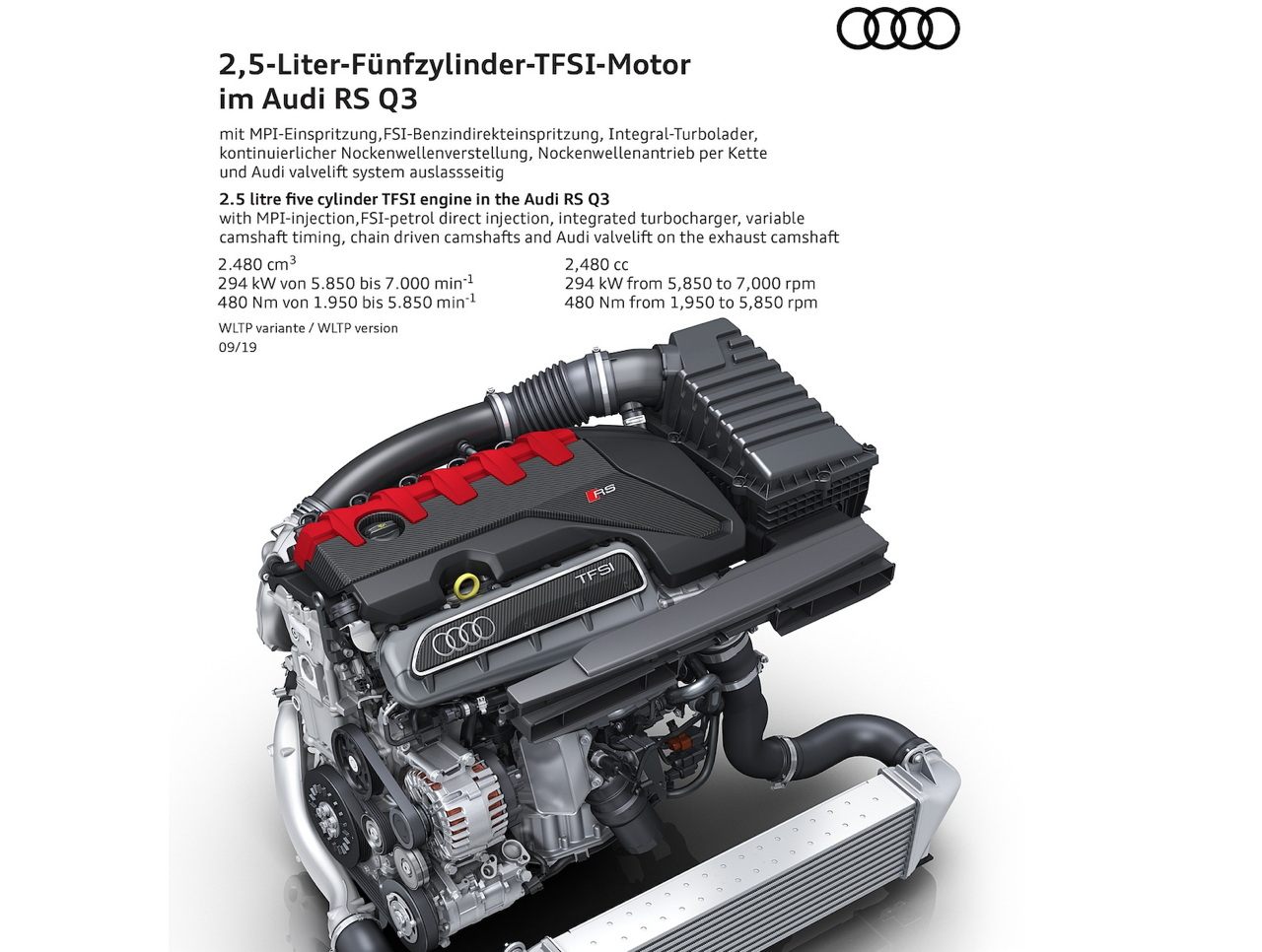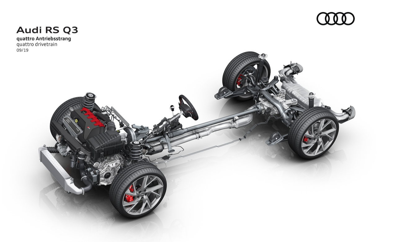 ภายใต้ฝากระโปรงคุณจะพบกับเครื่องยนต์เบนซินแถวเรียงในตระกูล RS แบบ 5 กระบอกสูบ ความจุ 2.5 ลิตร ติดตั้งระบบอัดอากาศเทอร์โบชาร์จ จากมันสมองและความเชี่ยวชาญของวิศวกรในเมือง Ingolstadt ซึ่งเป็นที่ตั้งของ Audi Sport เครื่องยนต์ปั่นกำลังได้มากถึง 294 กิโลวัตต์ หรือ 400 แรงม้า แรงฉุดลาก 480 นิวตันเมตร มากเกินพอสำหรับรถที่มีขนาดโตกว่า Toyota C-HR แค่นิดเดียว การส่งกำลังแรงบิดลงล้อทั้งสี่ ผ่านระบบเกียร์อัตโนมัติคลัตช์คู่ S tronic 7 สปีด ระบบขับเคลื่อน 4 ล้อที่สร้างความเสถียร Quattro เวอร์ชันล่าสุดที่สามารถผกผันแรงบิดไปยังล้อแต่ละข้างเพื่อสร้างสมดุลสูงสุดขณะทำความเร็ว RS Q3 Edition 10 Years เร่งจาก 0-100 กิโลเมตรต่อชั่วโมงใน 4.5 วินาที ความเร็วสูงสุด 250 กิโลเมตรต่อชั่วโมง ปล่อย CO2 214 กรัม ต่อระยะทาง 1 กิโลเมตร