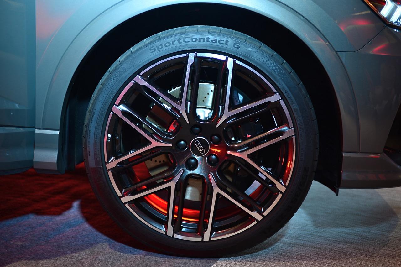 RS Q3 Sportback Edition 10 Years ใส่ล้ออัลลอยขอบ 21 นิ้ว ลายใหม่ล่าสุด (ลายล้อยังไม่โดนใจนะ) ยางสปอร์ต Continental Sport Contact 6 ไซส์ 255/35 R21 104Y XL ล้อ Audi RS Wheel ขอบ 21 นิ้ว น้ำหนักเบาลายใหม่ล่าสุดที่ Audi ใส่มาให้เป็นอุปกรณ์มาตรฐานโดยไม่ต้องควักกระเป๋าเพิ่ม ระบบเบรกติดตั้งคาร์ลิปเปอร์เบรกหน้าแบบ 6 พอต พร้อมจานดิสก์ขนาด 375 มิลลิเมตร ที่ด้านหน้า และแบบซิงเกิ้ลพอตที่ด้านหลัง พร้อมจานเบรกเส้นผ่าศูนย์กลาง 310 มิลลิเมตร สำหรับระบบเบรกประสิทธิภาพสูงแบบคาร์บอนเซรามิก เป็นออปชันเสริมที่ต้องเพิ่มเงินกันอีกหลายแสนบาท หากอยากได้การหยุดยั้งในระดับสูงสุด